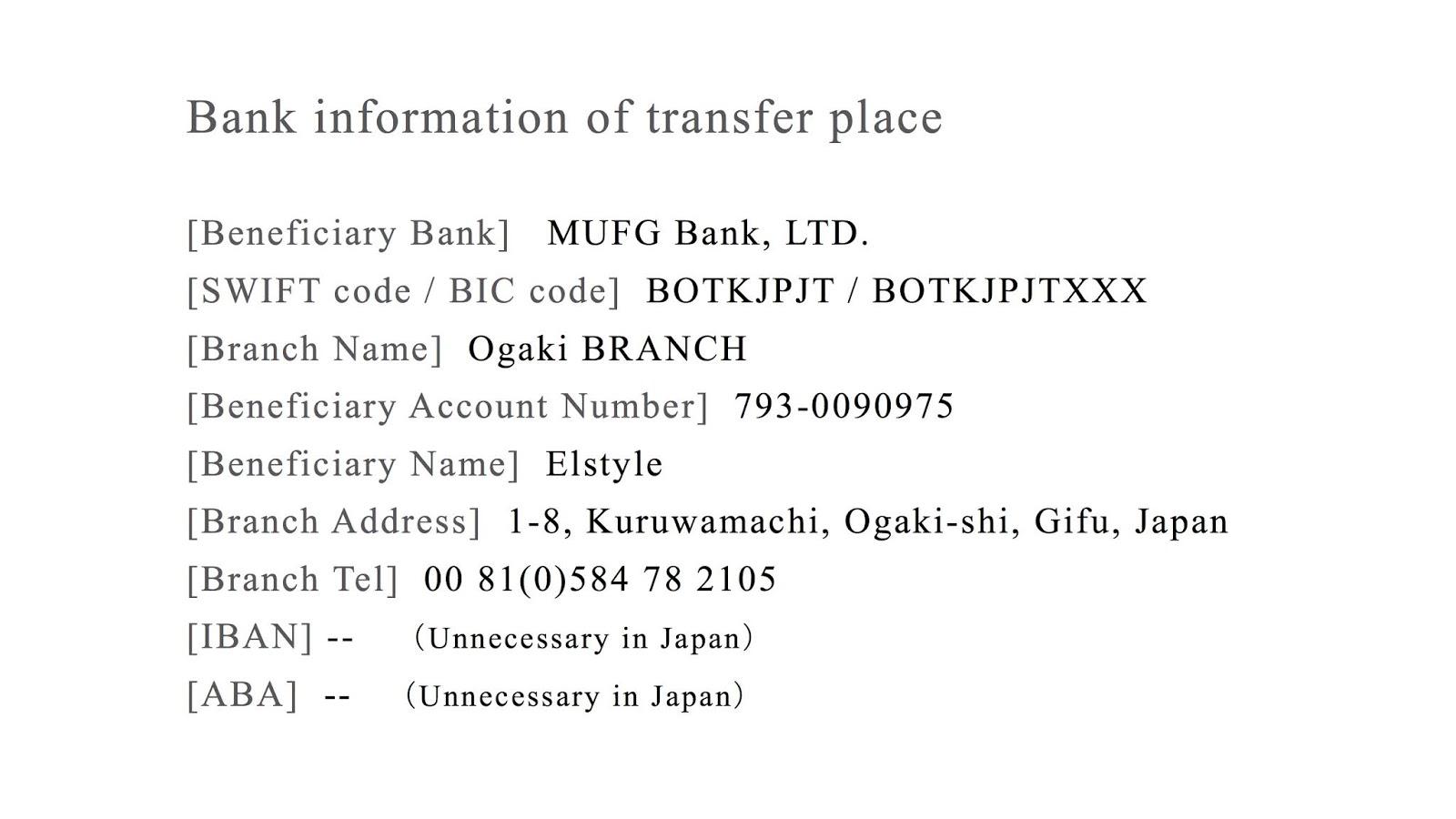 Bank information of transfer place