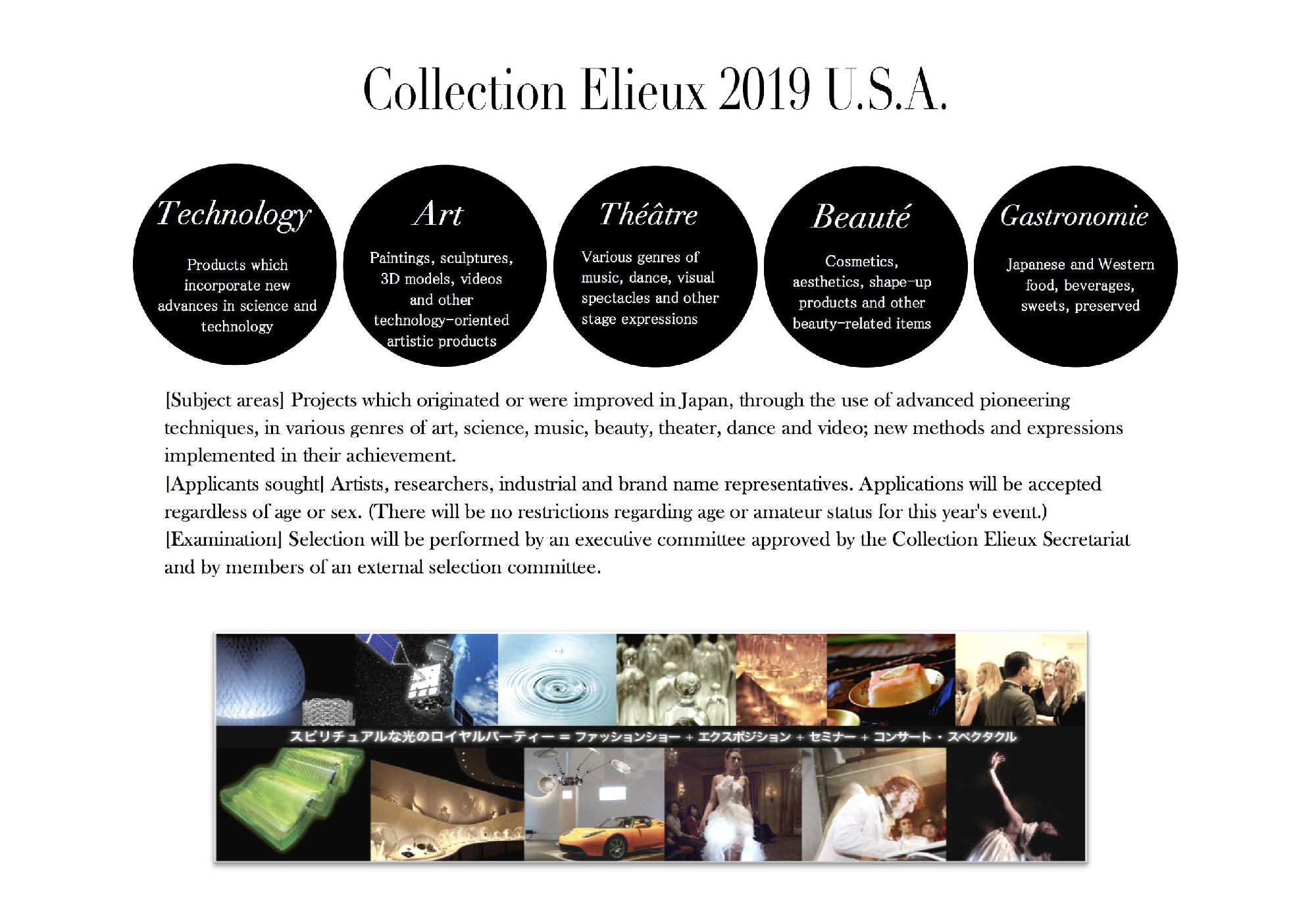 Collection Elieux is a new Olympic style award that pursues the origin of all creative efforts - the heart. It rewards artists in all cultural and artistic genres, and product/research development by cooperations. Thanks to cooperation and support from many, we were able to hold the 2014 pre-collection. Through the evaluative process of choosing the "most moving