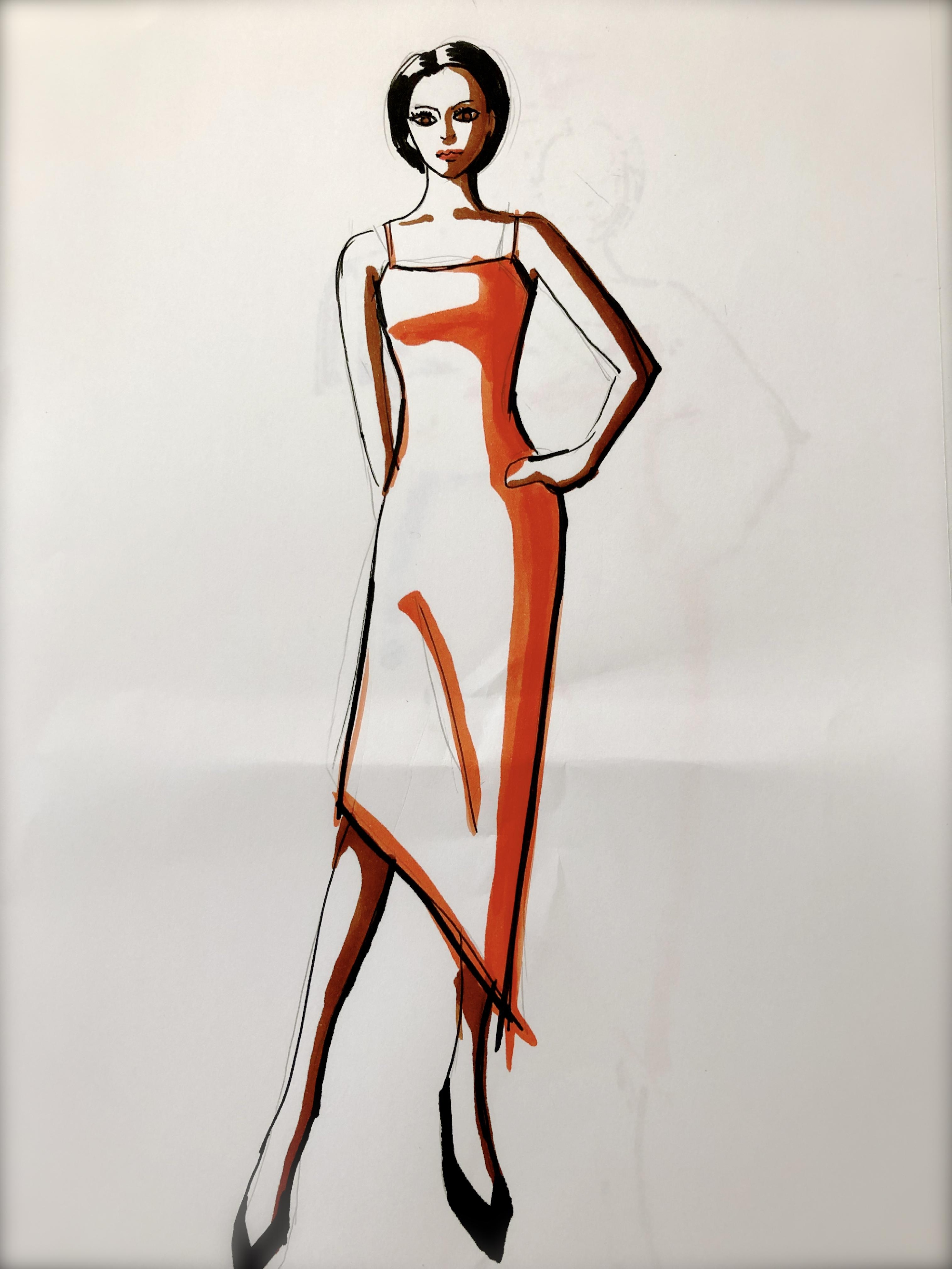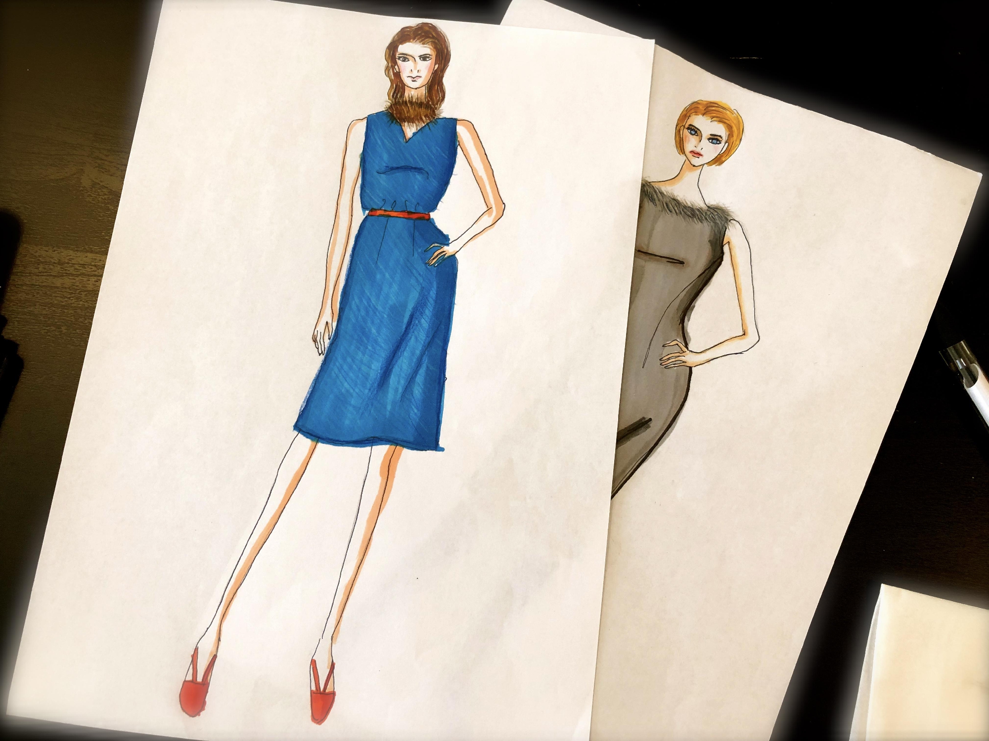 デザイナーコースでは、デザイン画のレッスンからスタートしました。先月の試験を終えてから、カラーや素材感の表現を学び、約一ヶ月でかなりデザイン画が変わって来ました。鮮やかになっただけでなく、オリジナルのスタイルが画風としても自然に出てきて、表情豊かになってきました。
