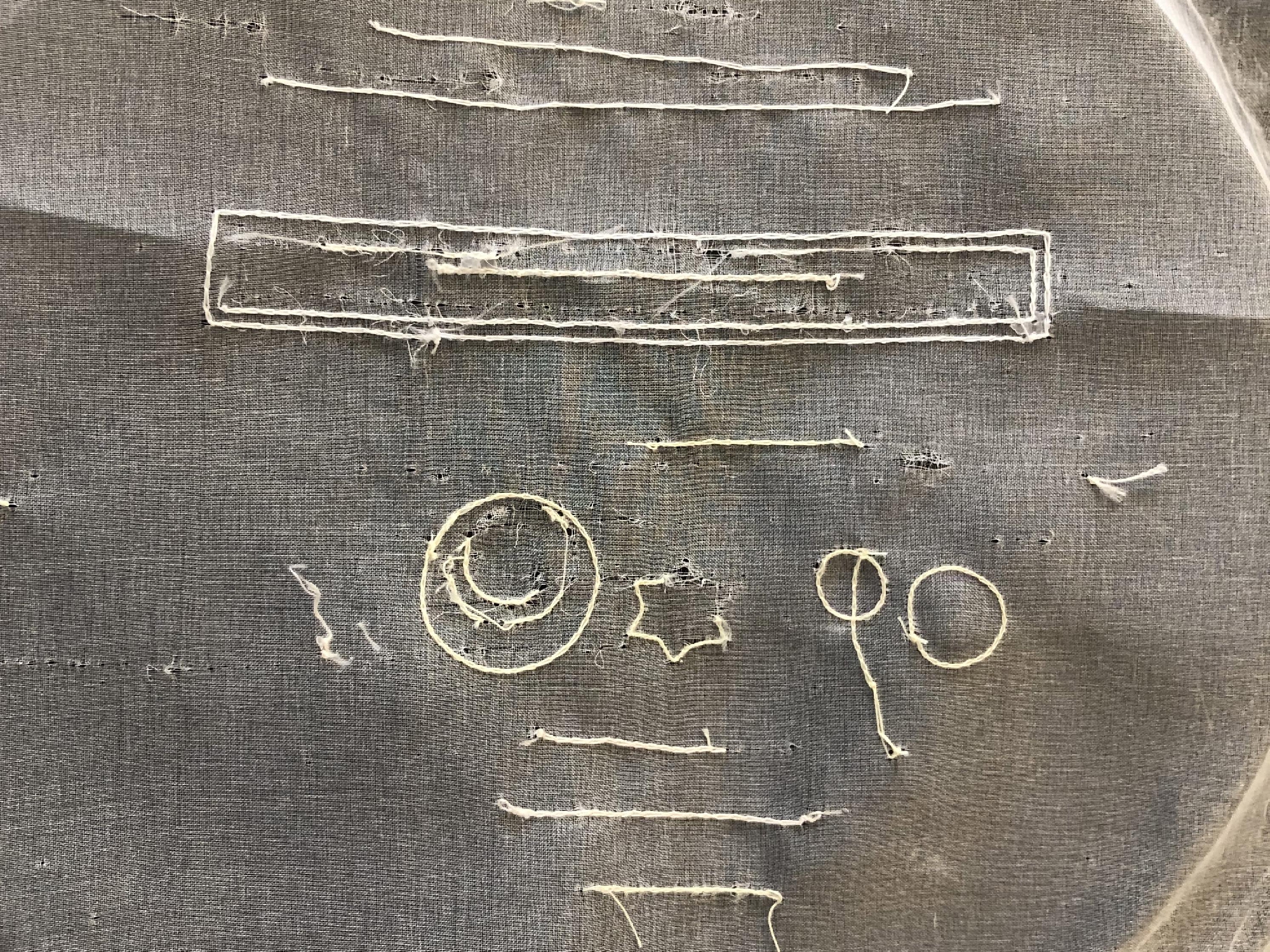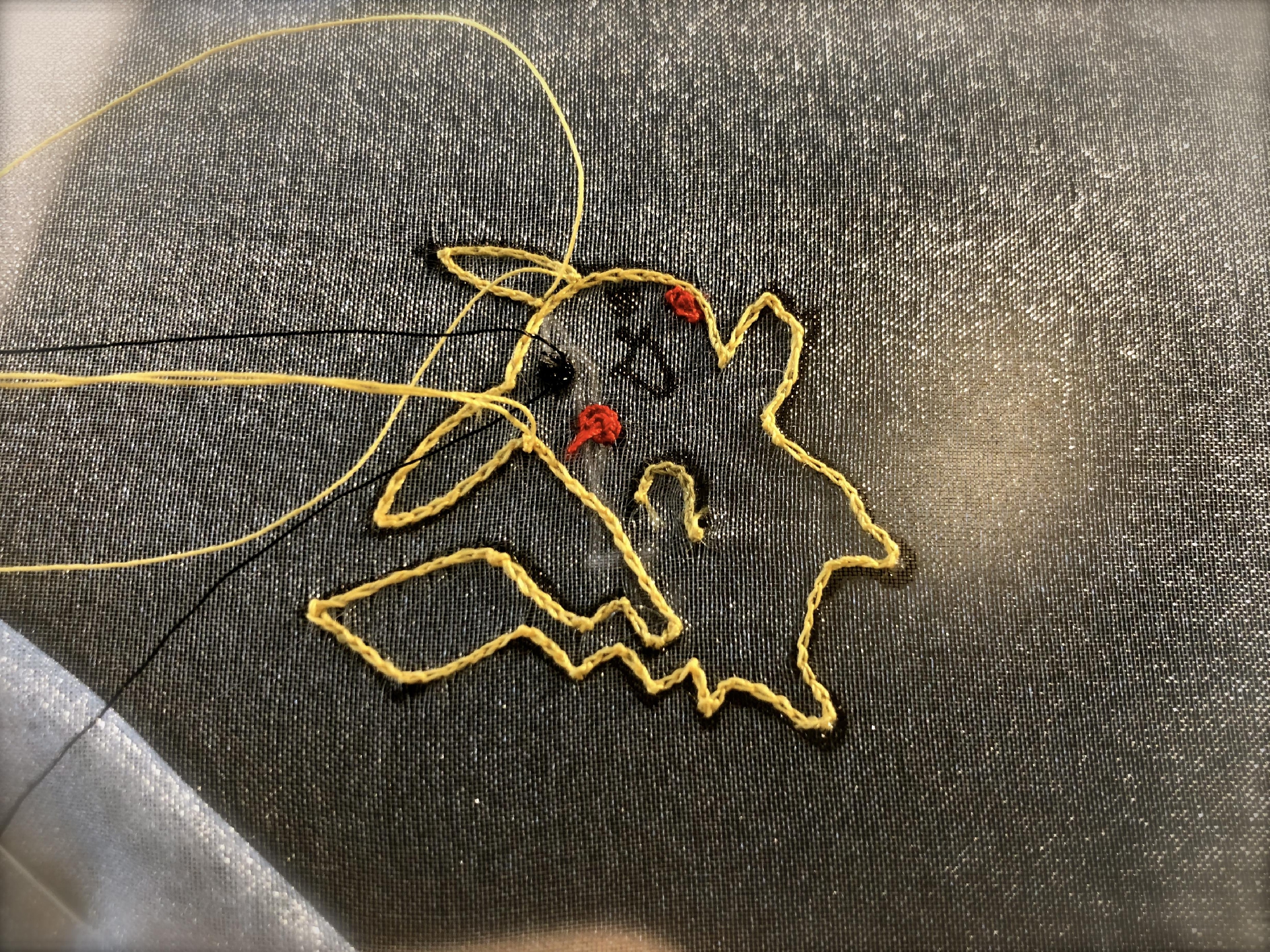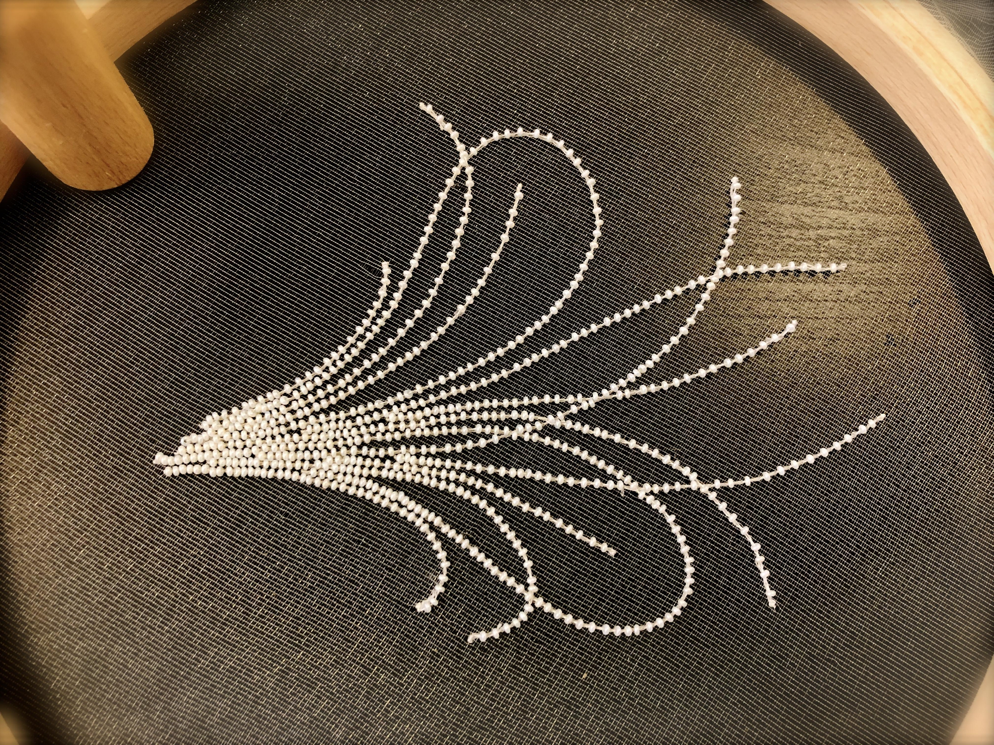 先月スタートの方々はステッチの基本をおさえる基礎課題を進めてきました。直線、曲がり角、カーブといったベーシックなモチーフを練習しますが、最初はどうしても上手く出来ないと、ステッチがとぎれとぎれになってしまった方もいました。約一時間、かわいいモチーフを図案にし、「出来る」というスタンスで集中して刺繡のコツをつかんでいくと、一変しました。目覚ましい成長力に驚くばかりです。かぎ針によるリュネビル法の刺繡は、慣れるまでは、「糸が引き上がらないかも。」「ダメだ。」という気持ちも出そうになりますが、コツを掴めば自転車に乗れる様になる時の様に、軽やかになりますので心配せず進んで下さい。