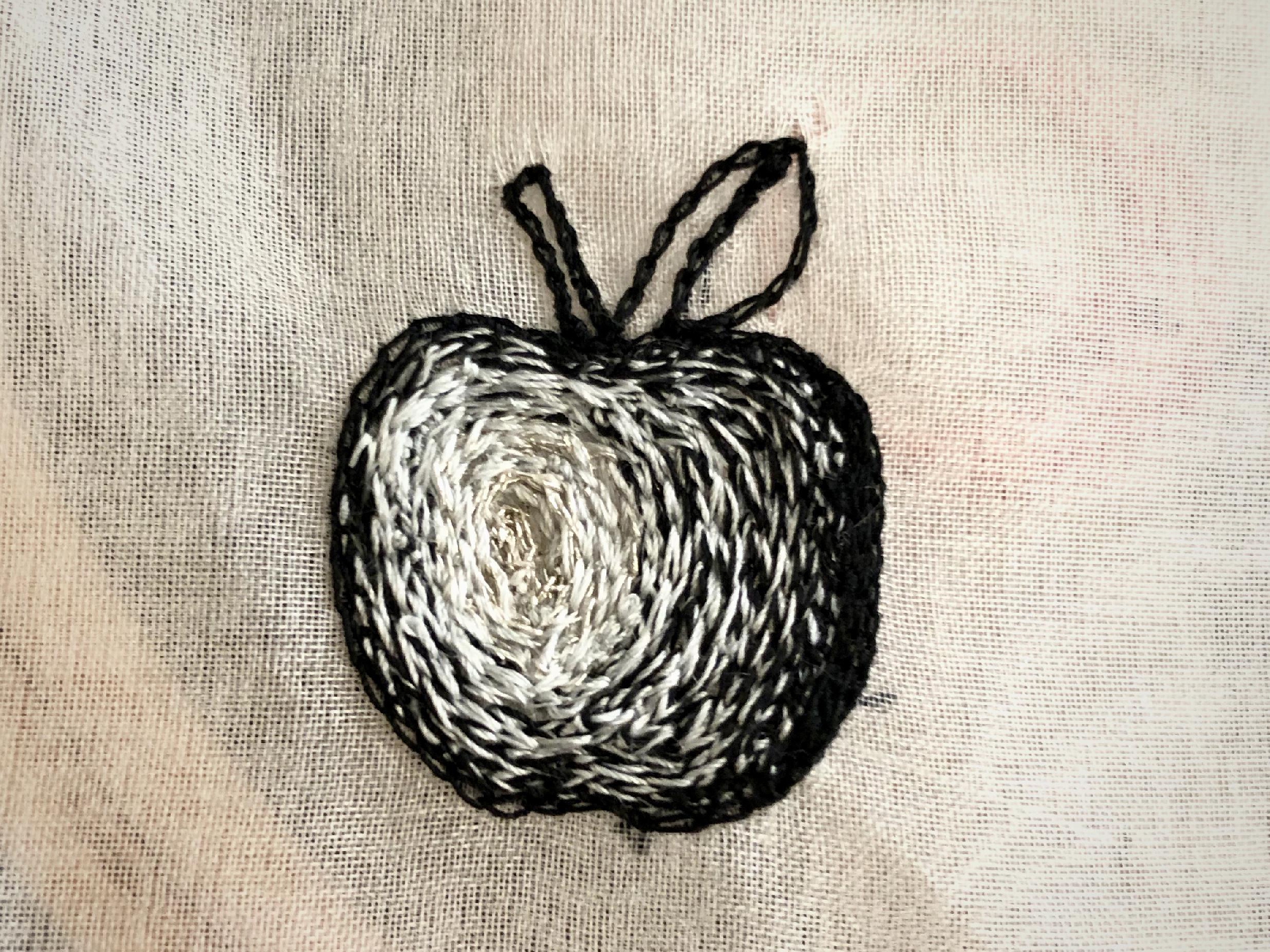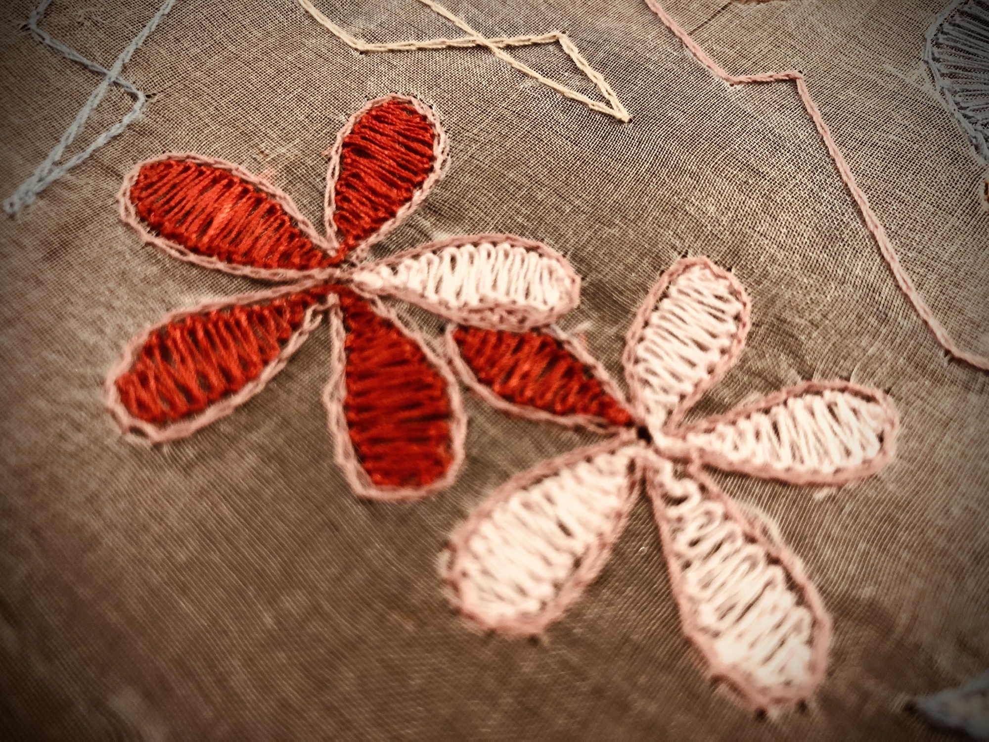 両手を使い始めると力が入り、刺繍の仕上がりも縮みやすいのですが、これまでかなり右手のステッチを磨いてきましたので、糸調子を緩め柔らかく刺すことができていると思います。