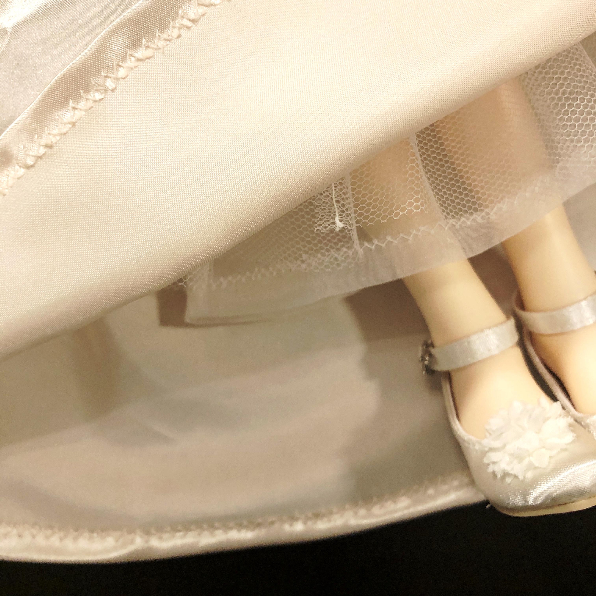 そしていよいよドール(人形)のドレスの制作に入りました。こちらの課題は選択制で、希望者のみ取り組みます。小さいことも合間って、とても可愛らしい素敵な作品ができてきています。一部、写真でご紹介します。