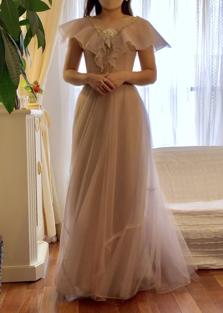 ベージュ・グレー・ピンクのチュールとオーガンジーの重なり