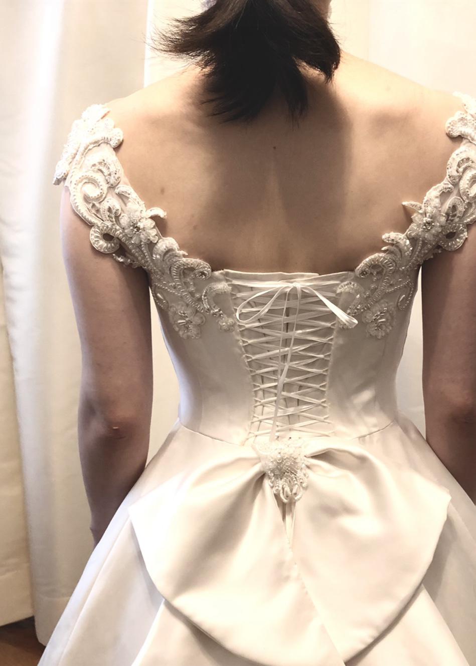それぞれの個性が光るドレスが完成しました。オンラインレッスンが続きましたが、細部まで美しい仕上がり。内部のコルセットが自然に引き締める綺麗なシルエット。ディティールの質感まで美しく輝くものになりました。オートクチュール ならではの個々の体型を生かすドレスになりました。