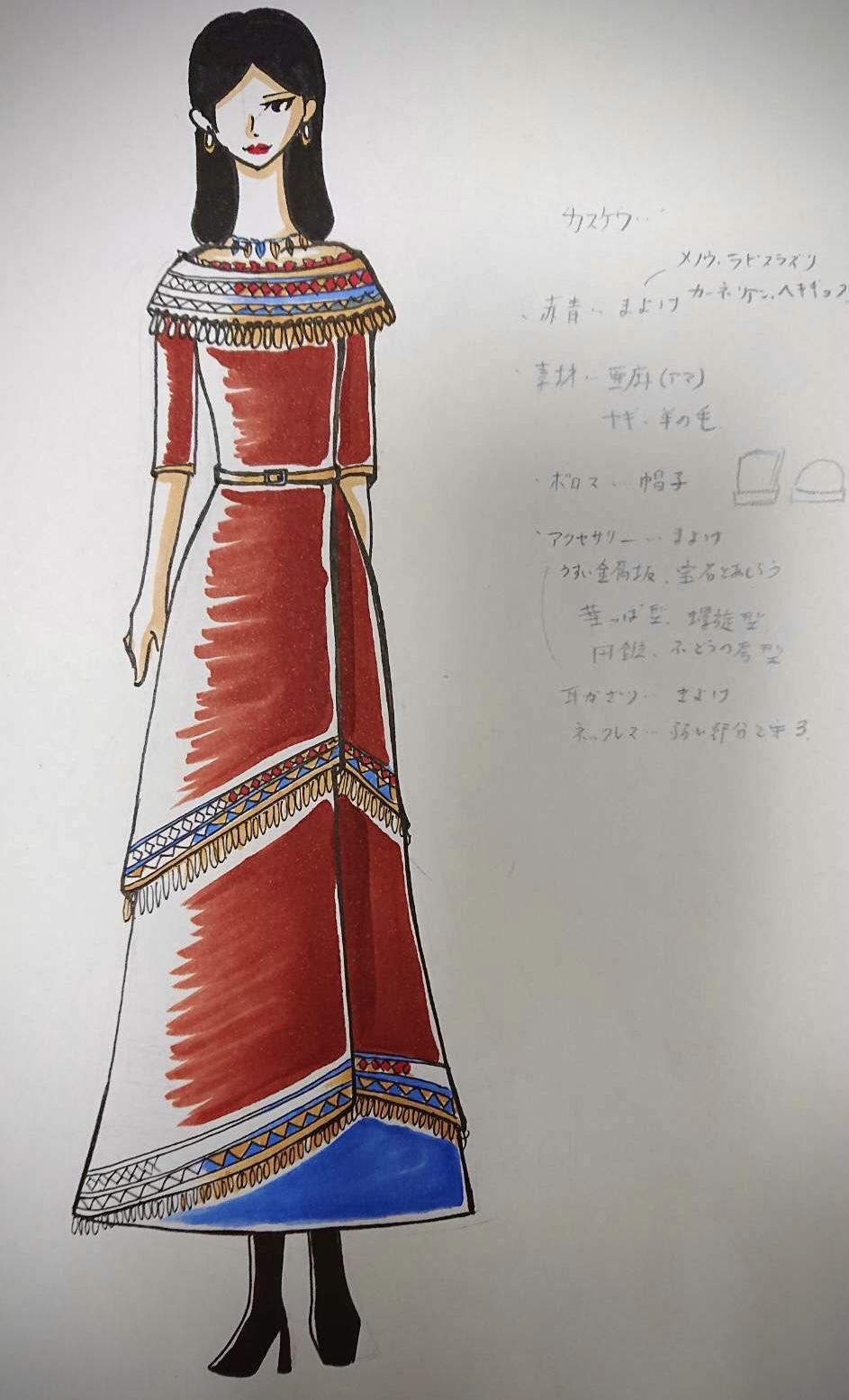 9月に入り、ファッション史を学びながらデザインをしスタイル画を描いていくレッスンも始まりました。「歴史は繰り返す」と言われますが、10年、20年のスパンではなく、数百年・数千年以上前のアイテムやデザイン・ディティール。その名残が今のファッションにもあることに、長い長い時を超えて流れていく美的感性があることに、奇跡のような不思議な感覚も覚えます。