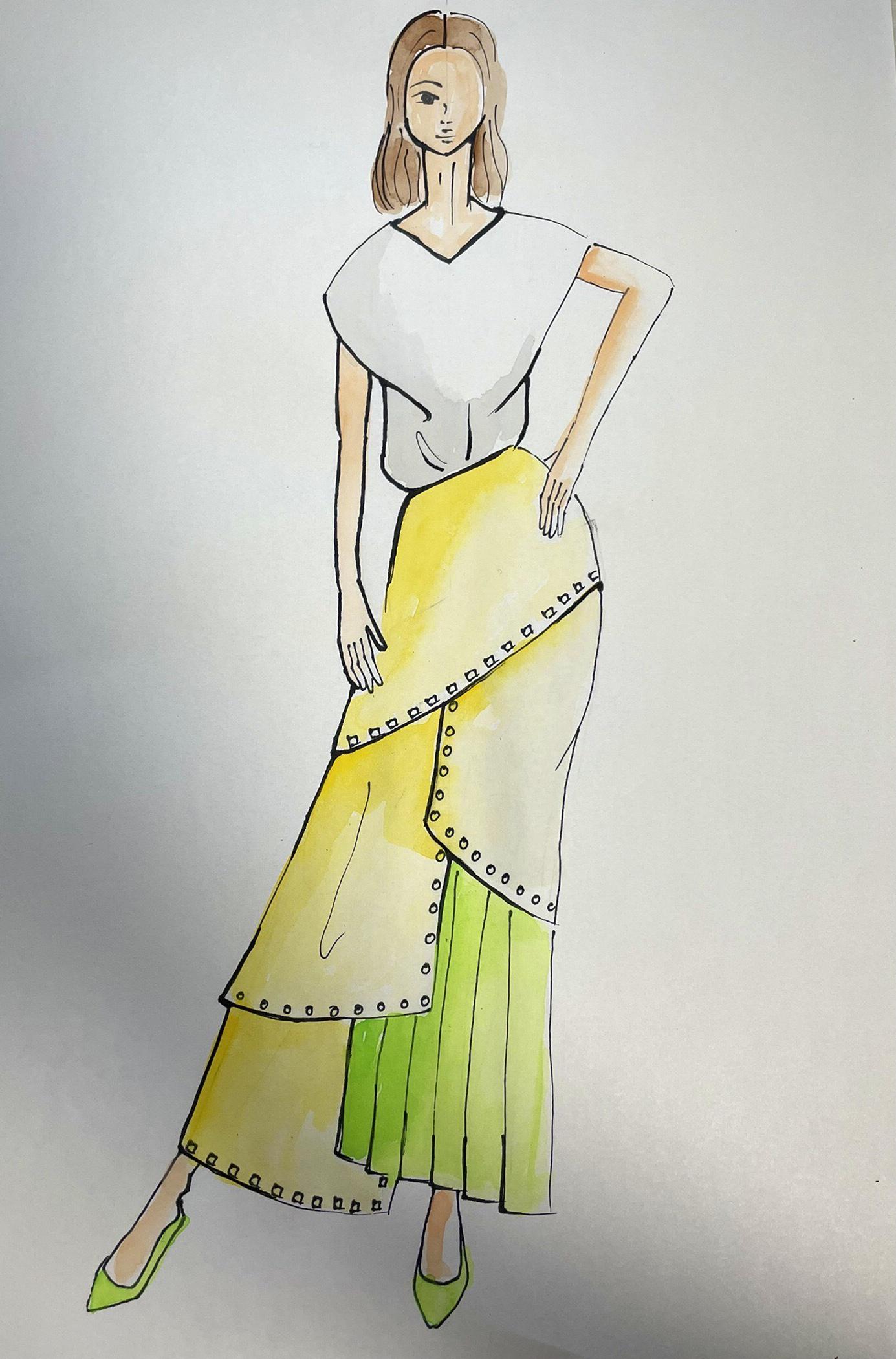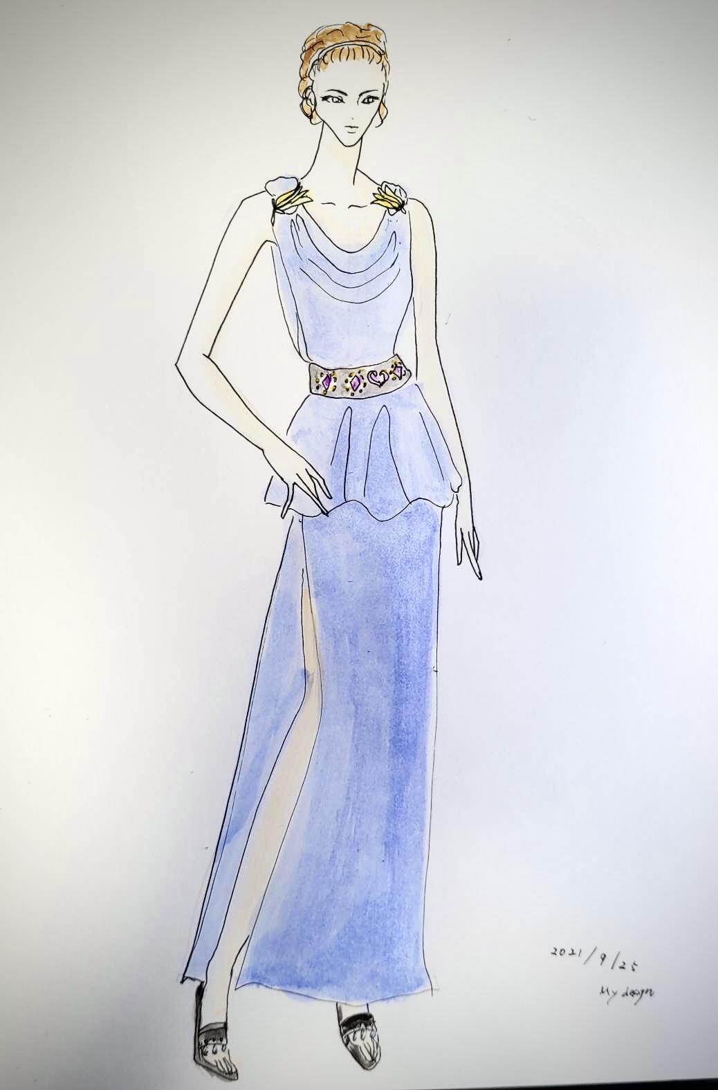 デザイン画にもそれぞれの方の個性が出てきています。後期は、自分のスタイルを完成させていきましょう。そのためにも自分にしかない個性やテイストを内面から紡ぎ出していただけたら嬉しく思います。より魅力的なデザイン表現になっていくでしょう。