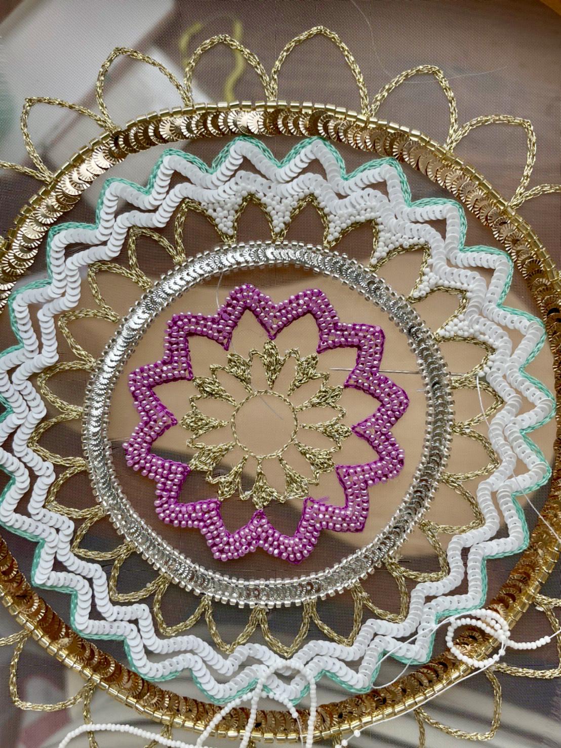 ビーズの詰まった感じや、丹念に刺繍されたスパンコール。レッスンの集大成となる最終課題が完成しました。