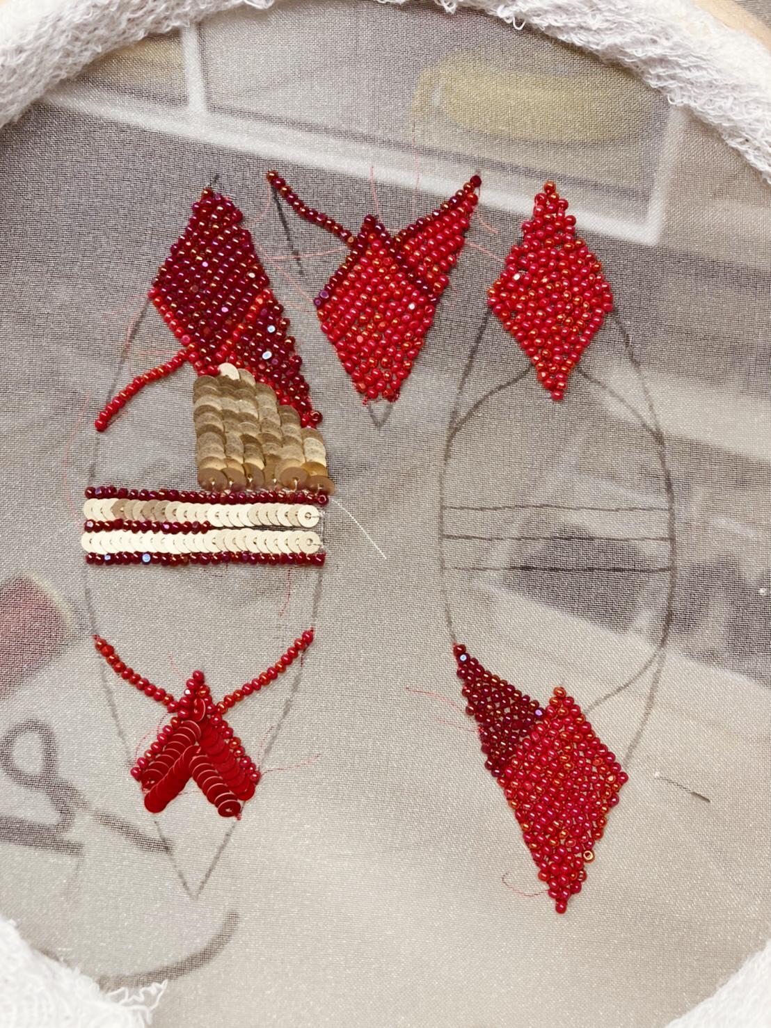 パーツを丁寧に仕立てて細部まで美しくビーズやスパンコールが敷き詰められた素敵な作品になりました。