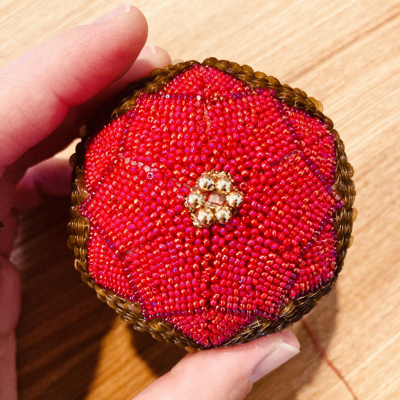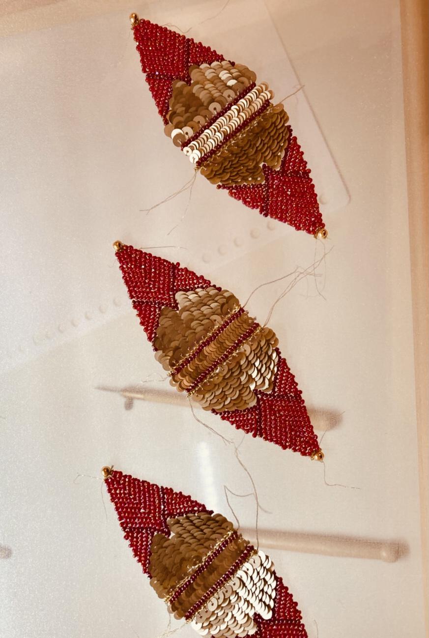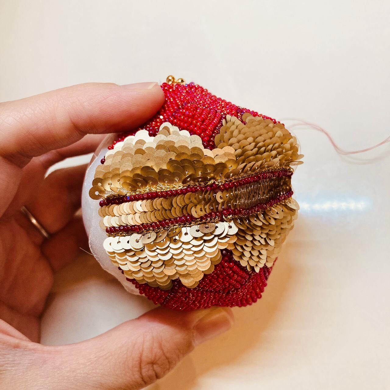 ビーズやスパンコールが美しく敷き詰められたオーナメントが完成