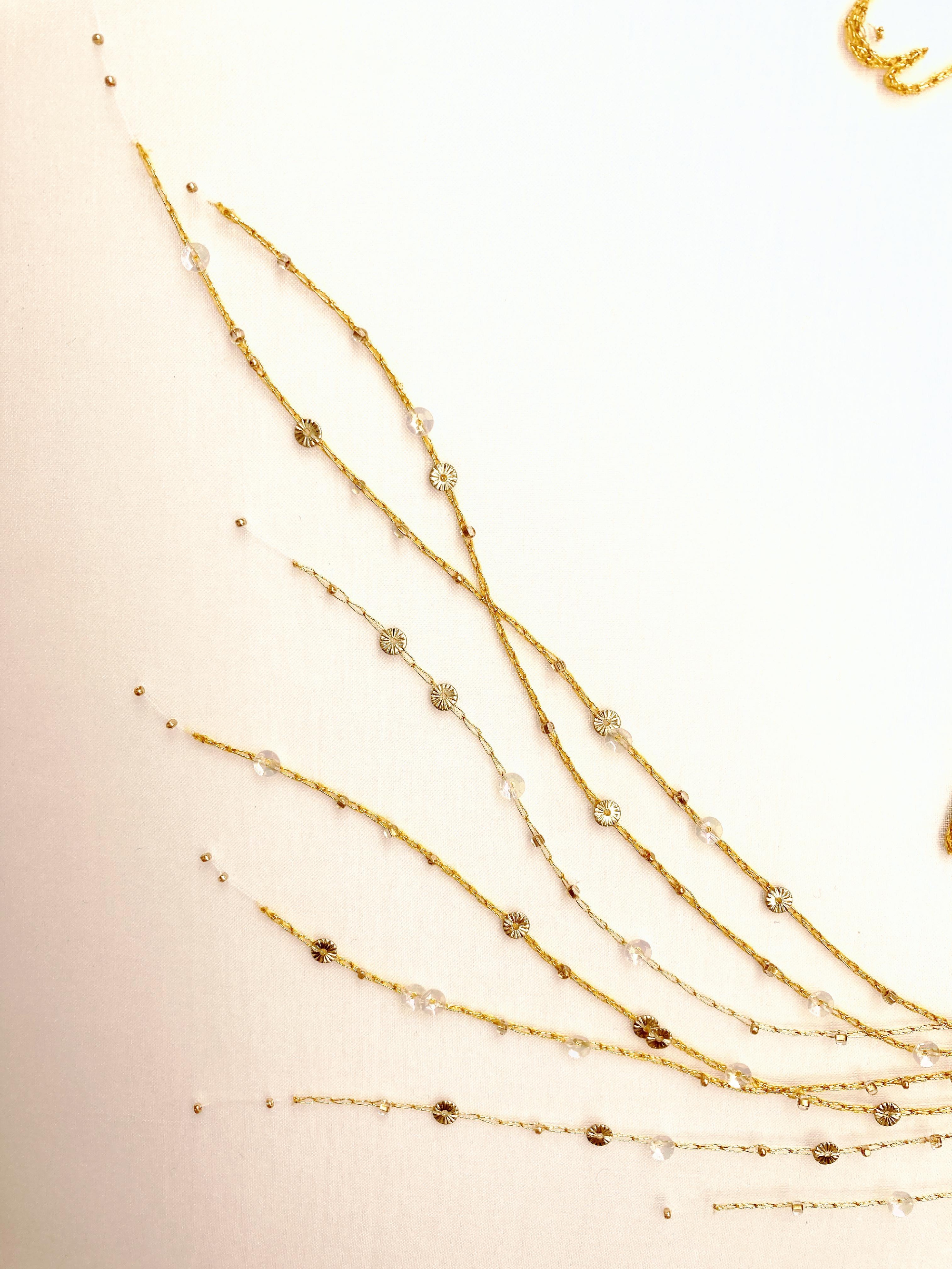 手仕事はミリ単位まで小さな配慮が自在です。機械刺繍とは一線を画した芸術を紡いていく幸福感。魂の癒しや、愛や美を表現する喜び。それは多くの人々に感動を与え、価値ある仕事として愛されるものになっていきます。このようなスキルとマインドを洗練させたスペシャリストの技術の向上を目指しています。