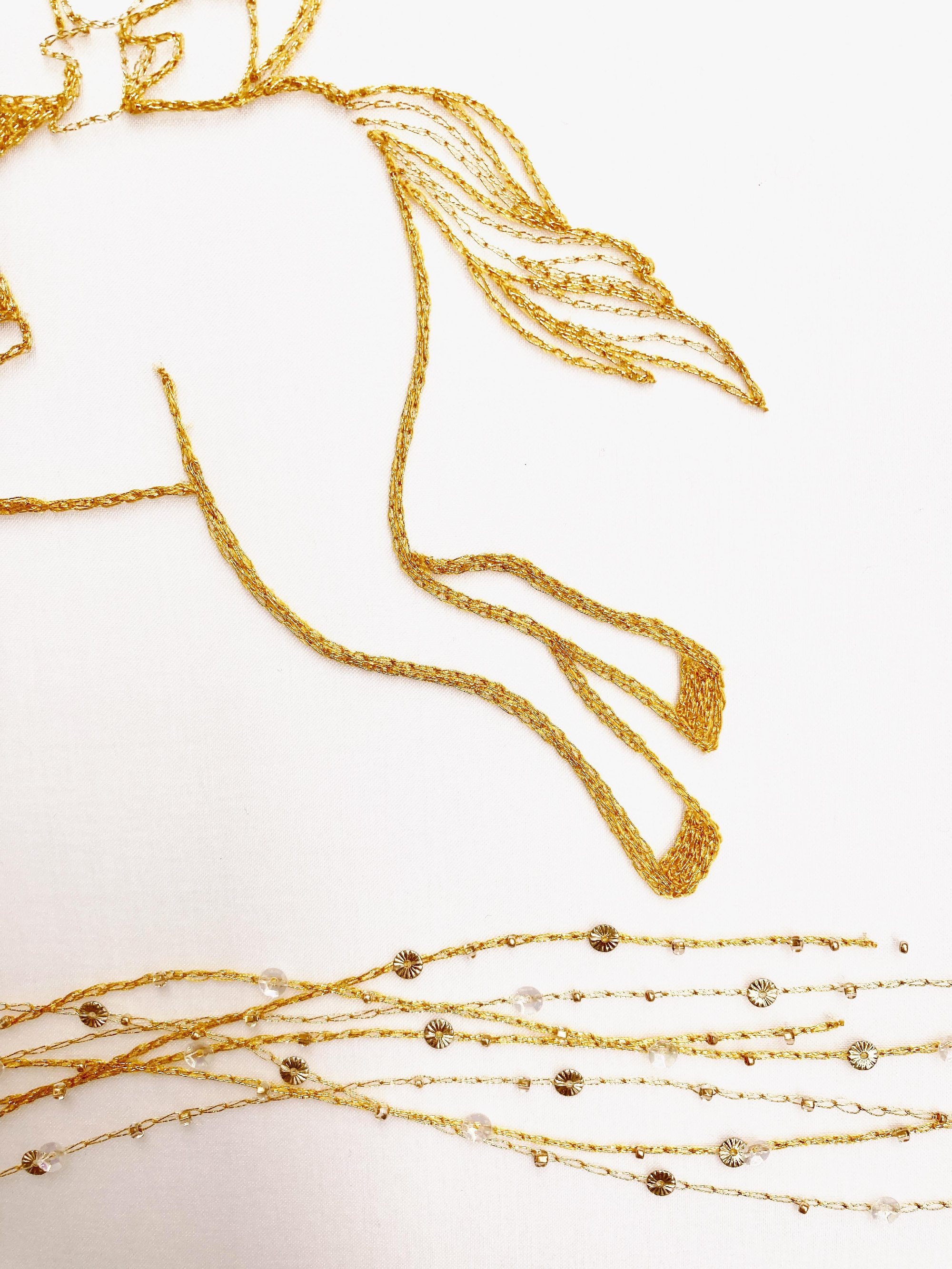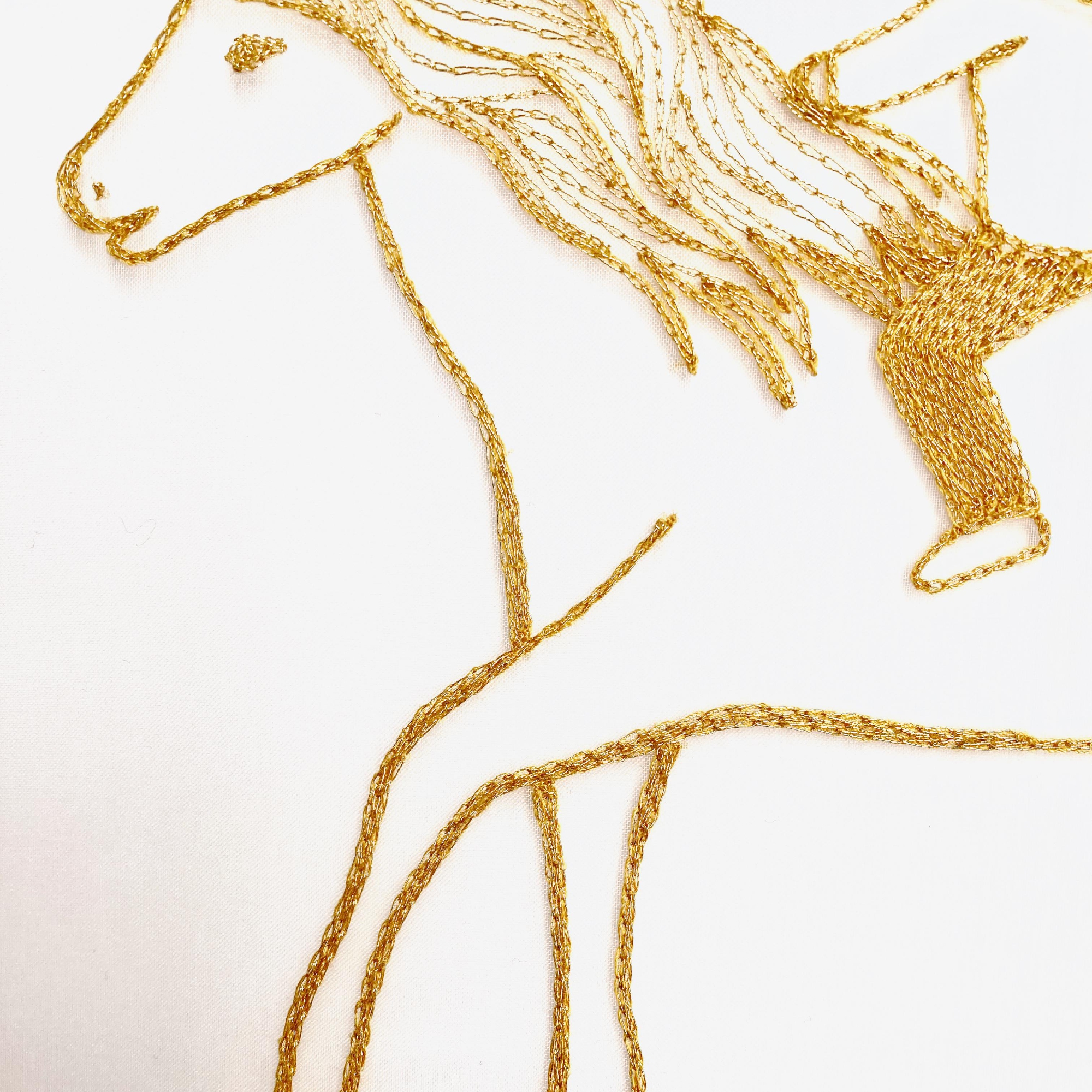 このコースではアートとして、金糸や銀糸の刺繍していきます。スペシャリストコース2は、リュネビルの刺繍で絵画を刺繍し、課題の提出によって工賃を受け取っていく副業準備コースでもあります。この副業は、明確な仕様書に基づく正式な刺繍制作の外注となります。