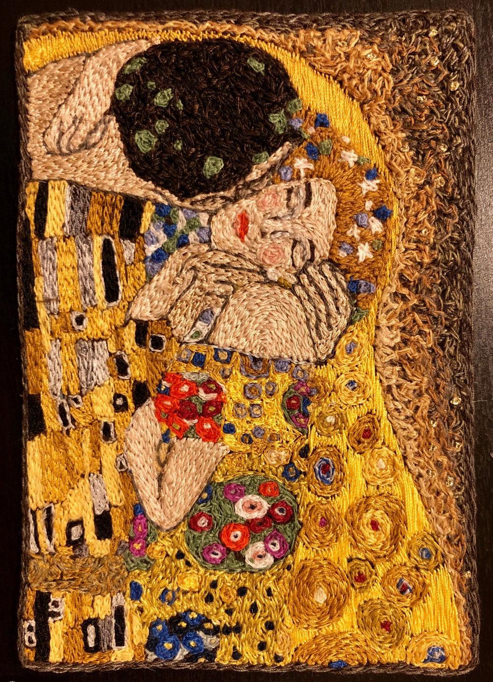 Photo↓クリムトの絵画の刺繍 完成 生徒作品