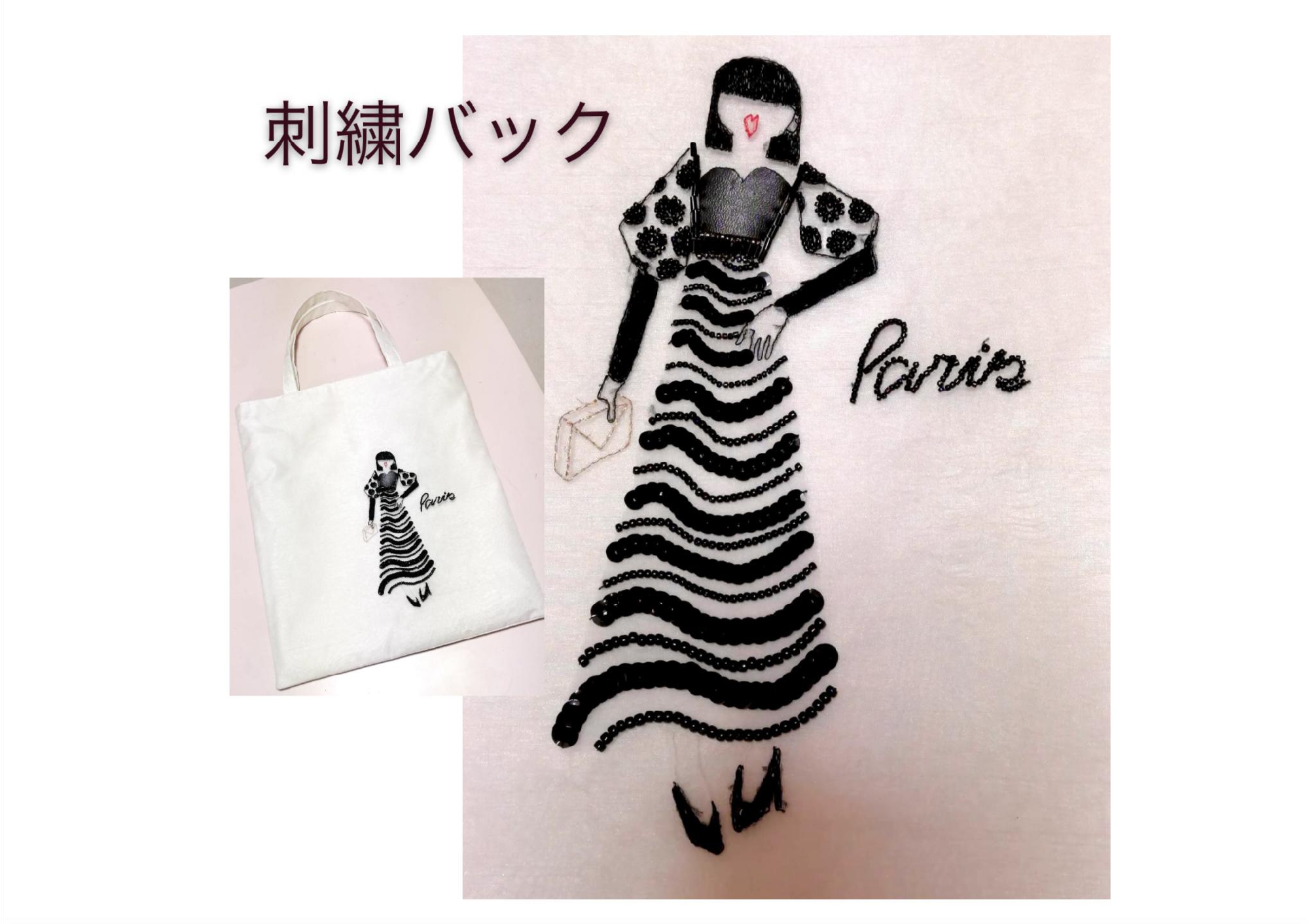 娘さんのデザインされたスタイル画を生かした刺繍のトートバックを作成されました。親子での素敵な共同クリエーション作品でした。スタイル画のデザインが生きるよう、細部の刺繍の挿し方やレザー素材を用いたりと、細部にまでクリエイティビティが生きた作品となりました。技術的な完成度は、ご自身でも「まだまだ思うようにいかない」と言われていましたが、毎回の課題も、納得がいくまで力を尽くされています。このまま、努力を重ねられることで、確かな技術をその手に宿されるでしょう。