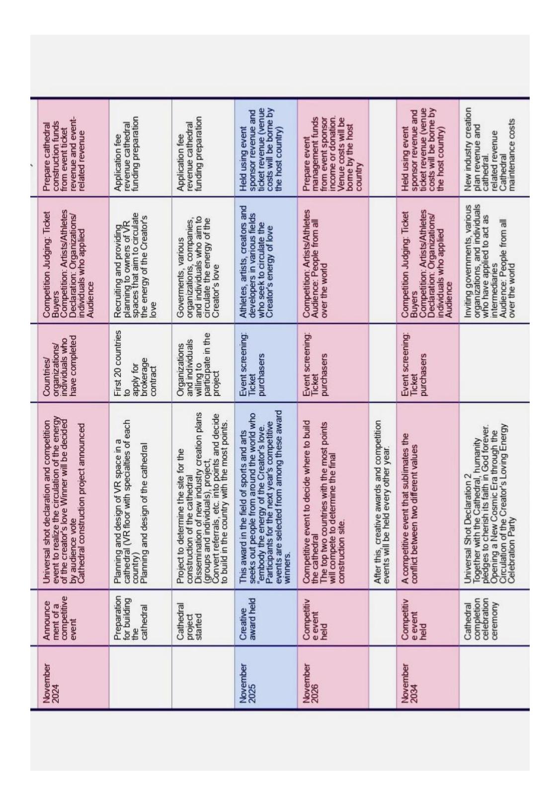 世界で大聖堂のニーズは、数年前であれば「なくてもいいもの」 という意見が大きかったかもしれません。しかし、パンデミックが世界を襲い、 紛争や戦争は地球を崩壊させかねない危機的な現実をもたらしています。人間知をどれだけ集めても、 解決は困難です。 「戦争を終わらせる事が出来るか? 」は厳しい問題です。 しかし人々が、別の宗教と共に協力し、共通の大聖堂を建設する事で、宗教間や国際間の対立を回避する事が出来ます。それは、厳重な警備の整えられた警察署内で、殺人などの犯罪をする事が、困難である事にも似ているかもしれません。"厳重な至高の愛によって対立を未然に防ぐ事が出来る"その様な愛の循環を起こしていきたいと考えます。