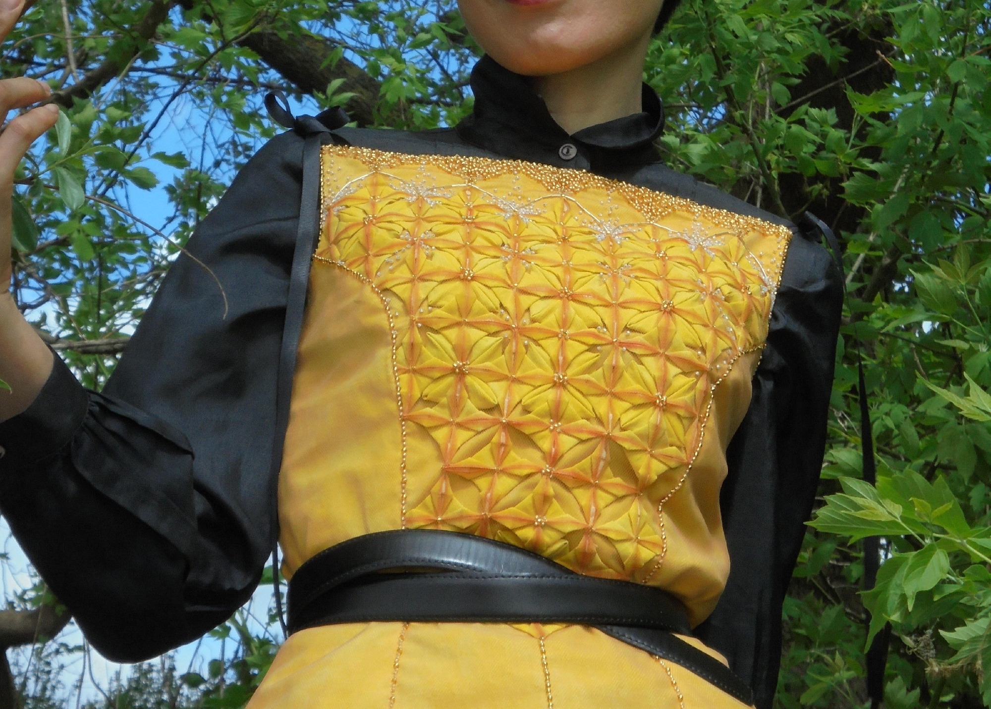 私はその生地の固さを生かして、 ペイントを沿えて布の折り紙をつくり...
