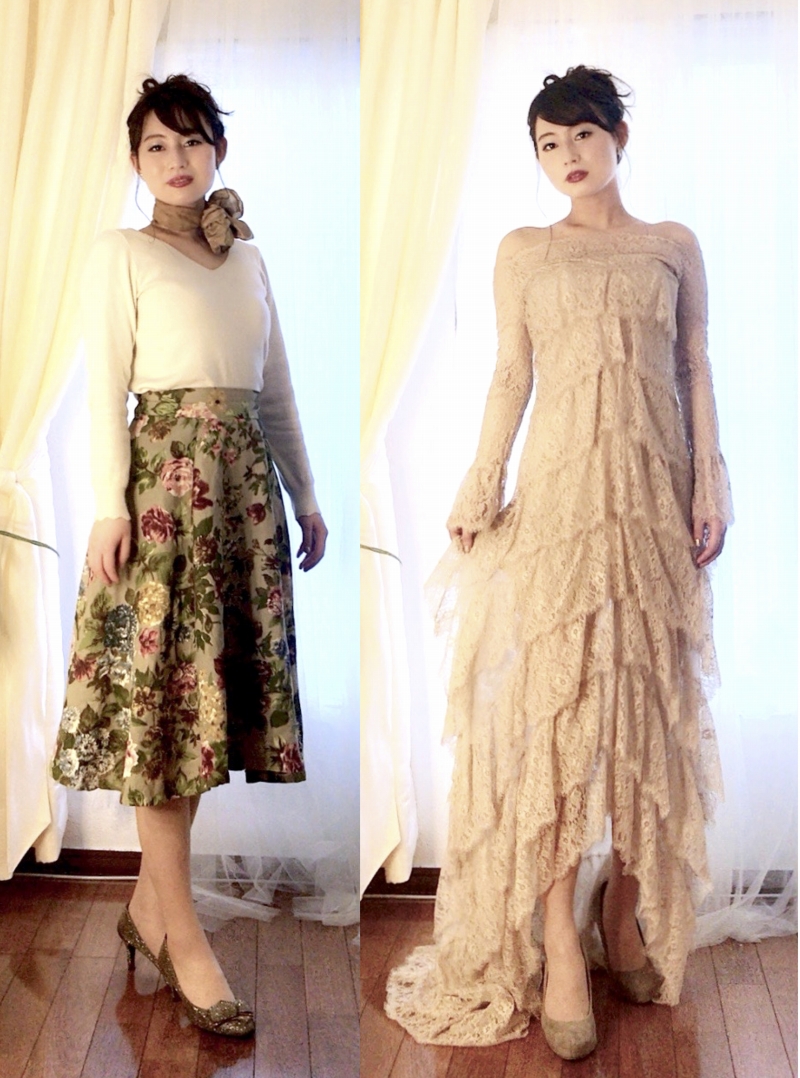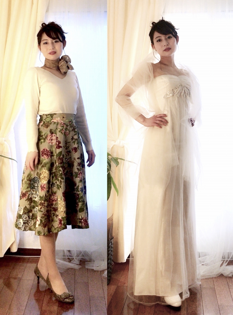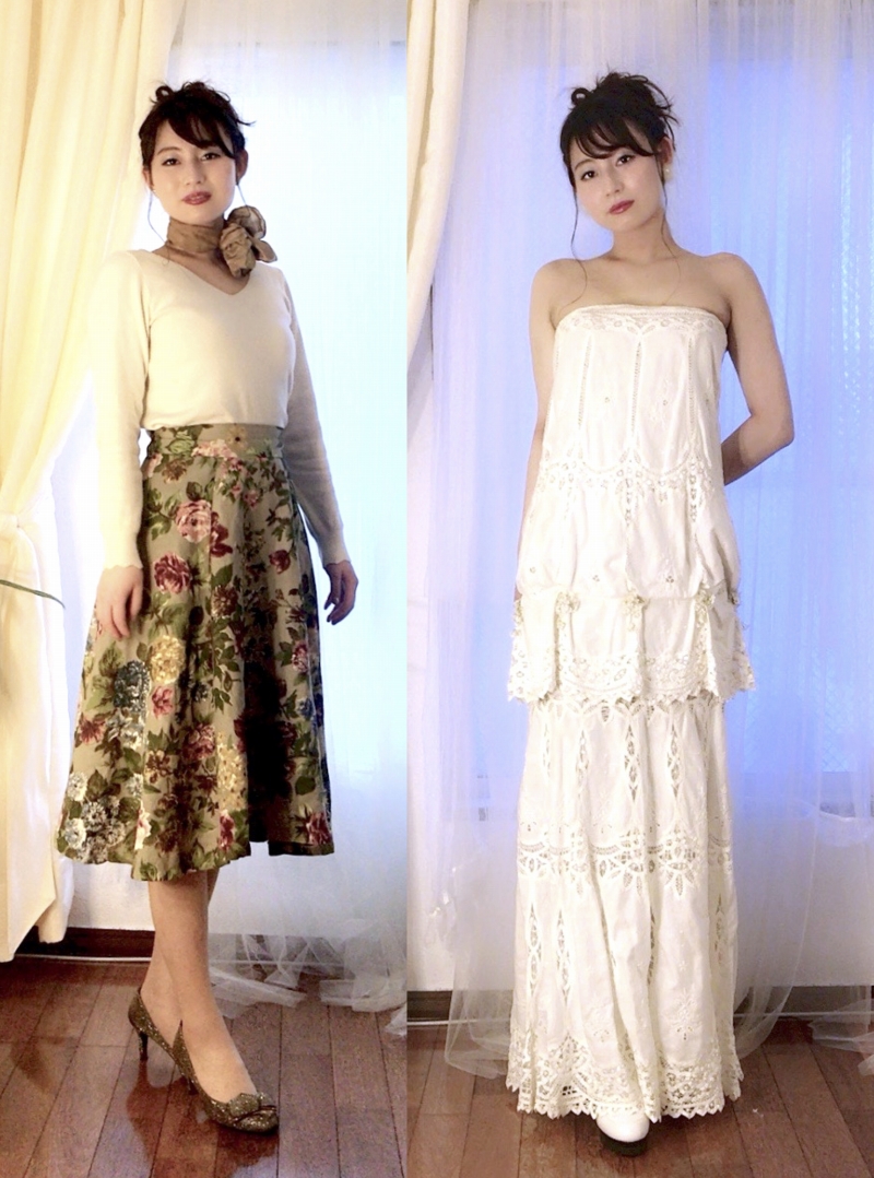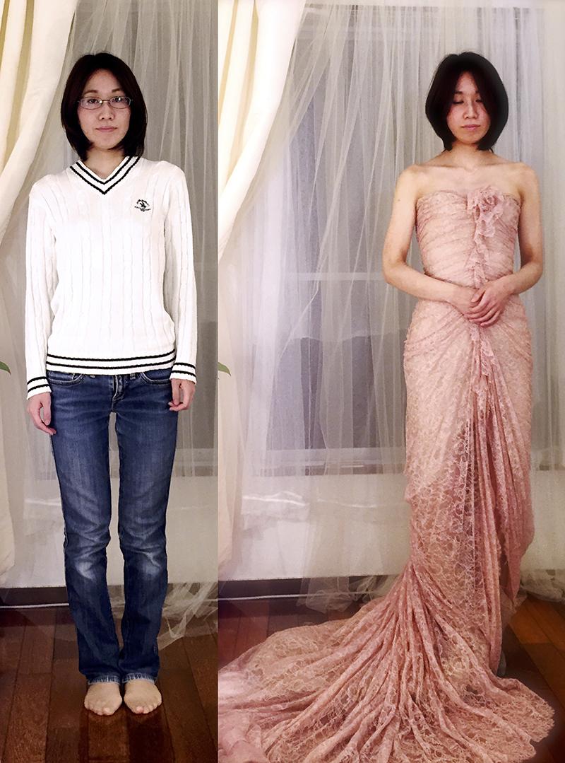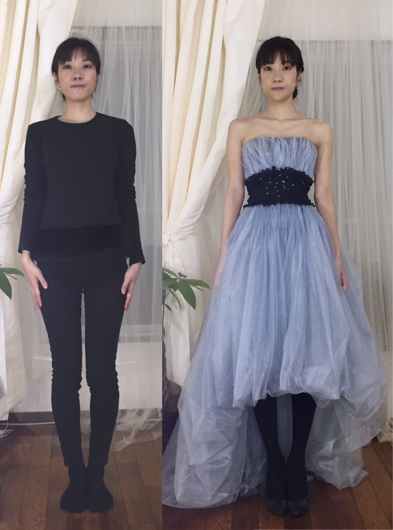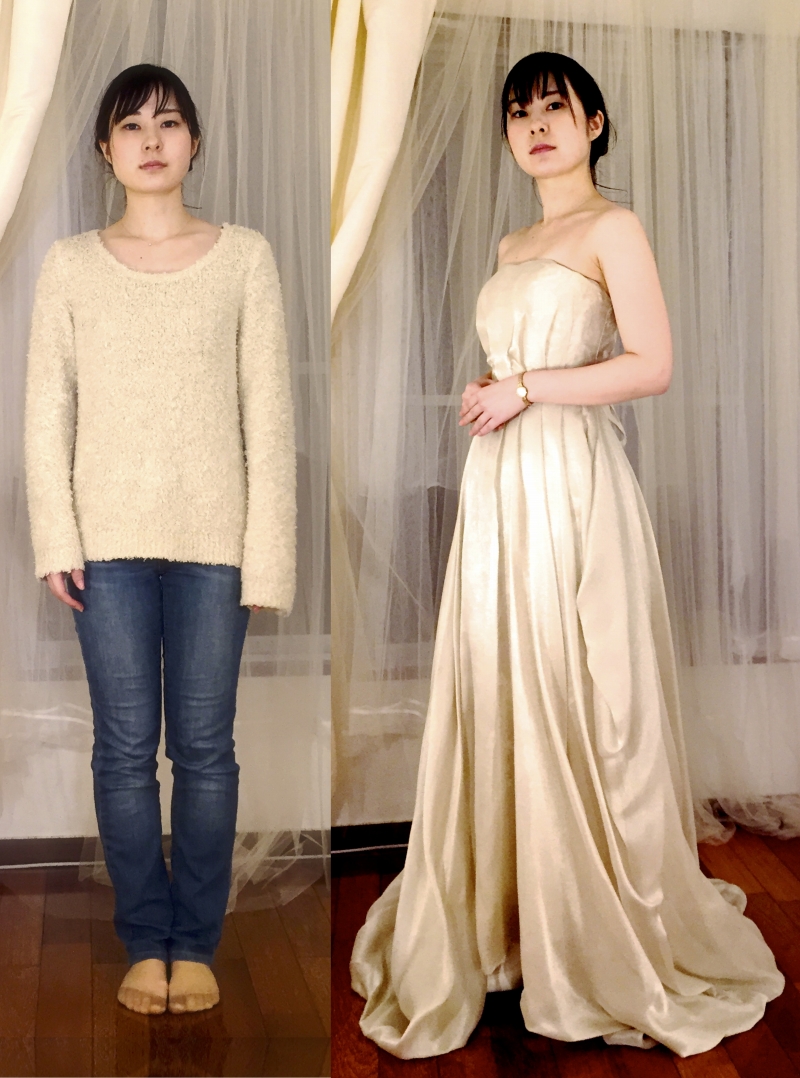お客様の試着:コルセットのドレスを着てみました