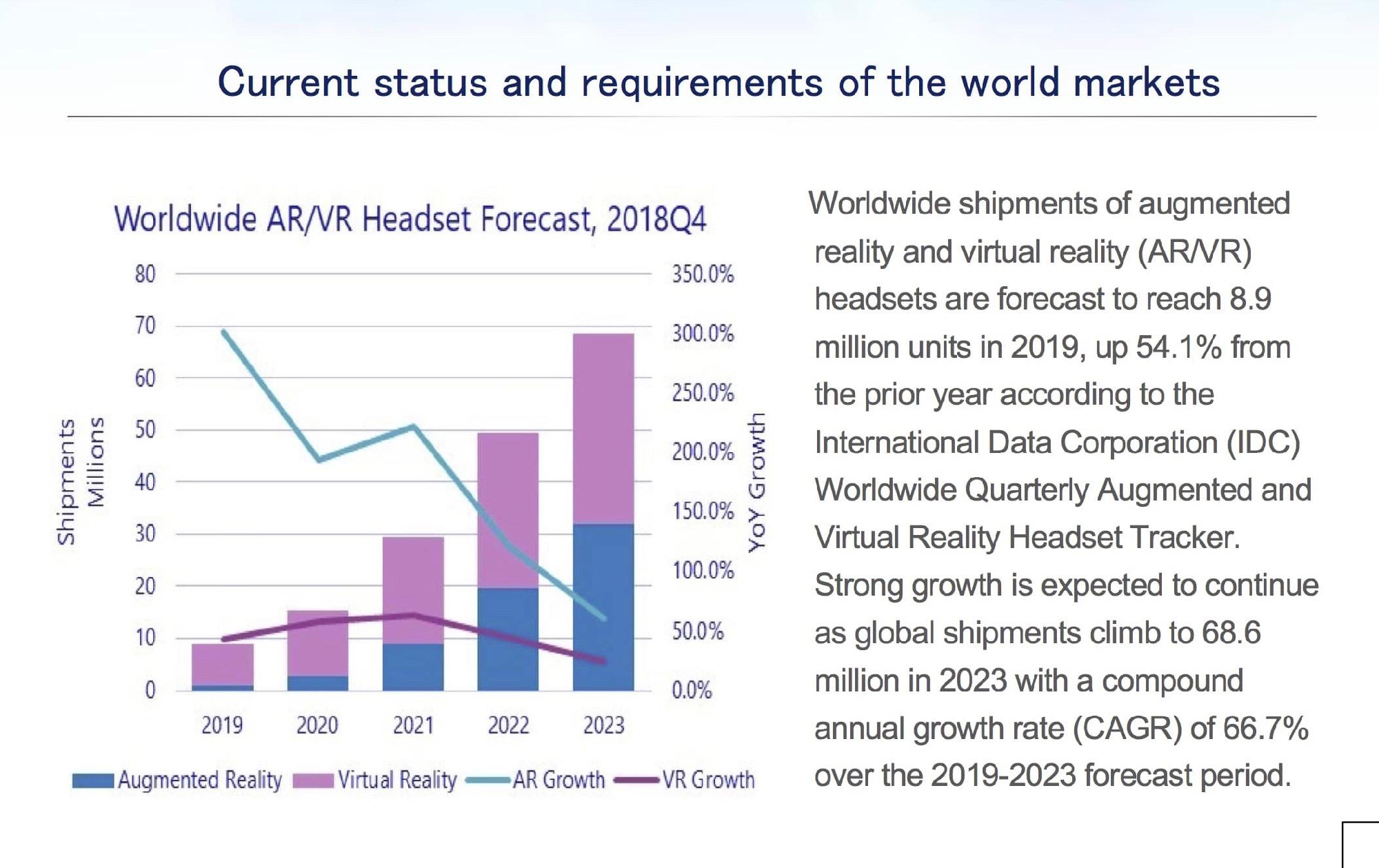 「Virtual Reality Headset Tracker」によると、2019年のヘッドセットは前年比54.1%増の890万台に達すると予測され、力強い成長は続くと予想される。