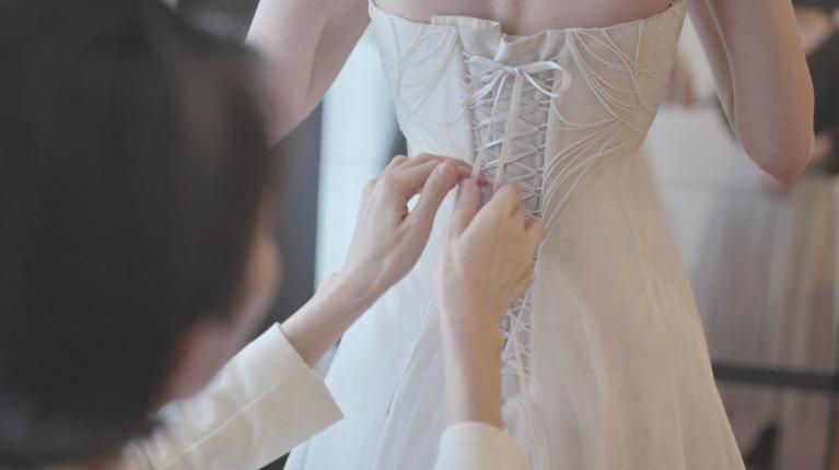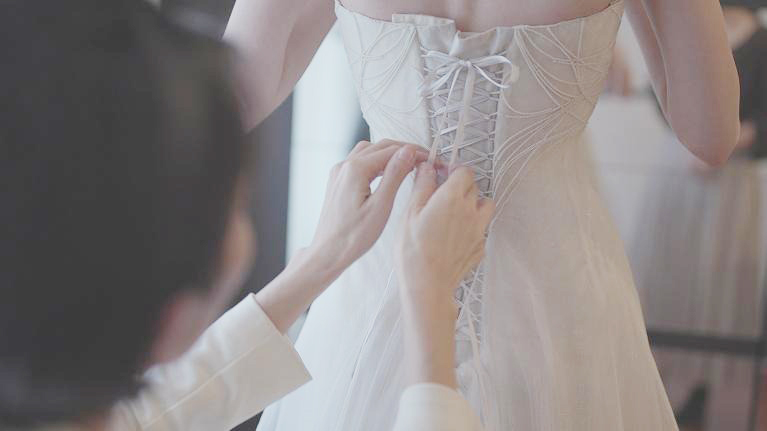 ※ドレスの着付けをお手伝いする専門スタッフが挙式会場へ出張をし着用フォローを致します。