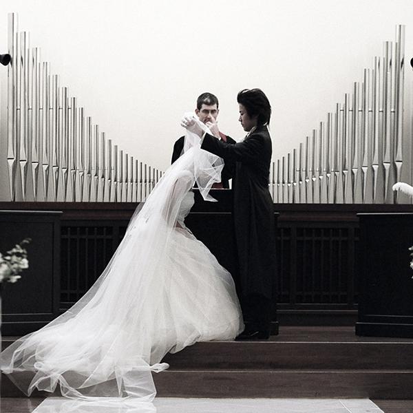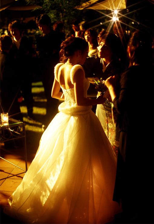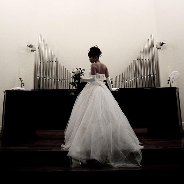 オーダープランのLEDを内蔵する光を取り入れると、重なり合うシルクオーガンジーとクリスタルのもつピュアな透明感が際立ち、感動的な瞬間を魅せます。