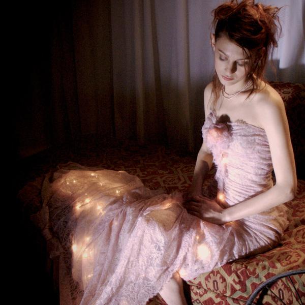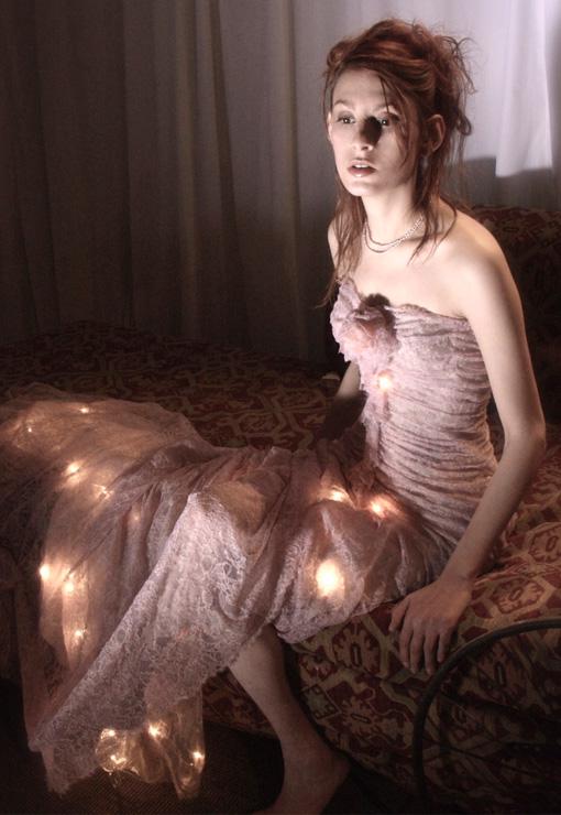 オーダープランのLEDを内蔵する光を取り入れると、レースの繊細な柄やギャザー、ドレープが陰影を浮かび上がらせ、美しくドラマティックな表情を魅せます。