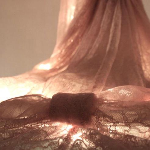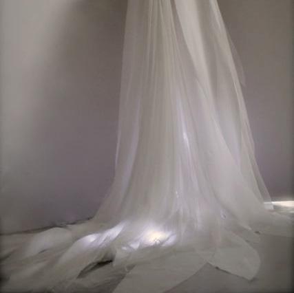 透明感溢れる柔らかな素材が美しく重なり合い、心癒されるような心地良く優しいニュアンスを醸し出します。 オーダープランのLEDを内蔵する光を取り入れると、重なり合うレースがレリーフのように浮かび上がり、可憐な花の世界へと誘います。