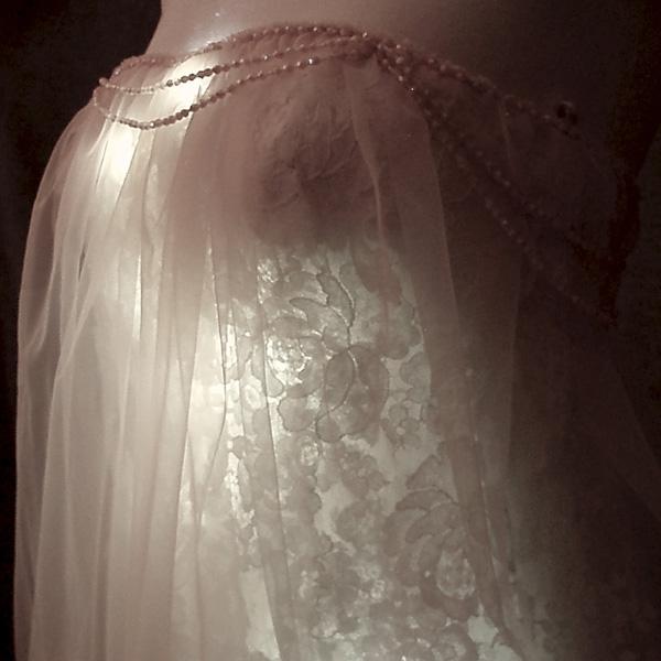Material :シースルーオーガンジー・シルクポンジェ・チュール・アンティークビーズ