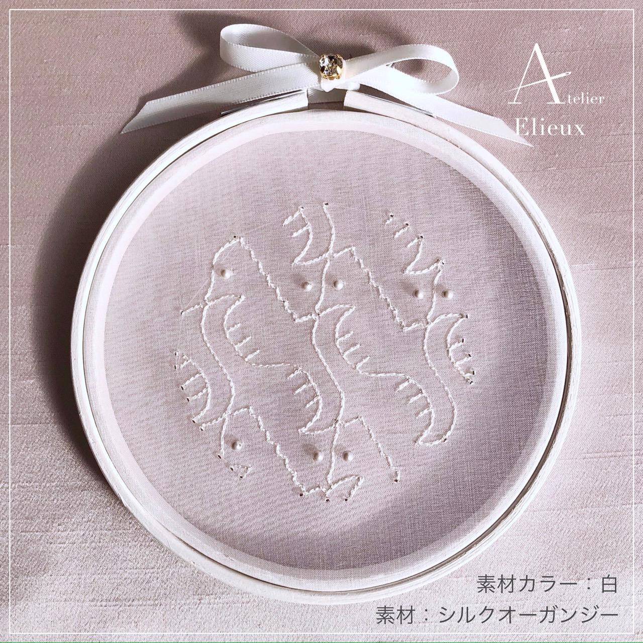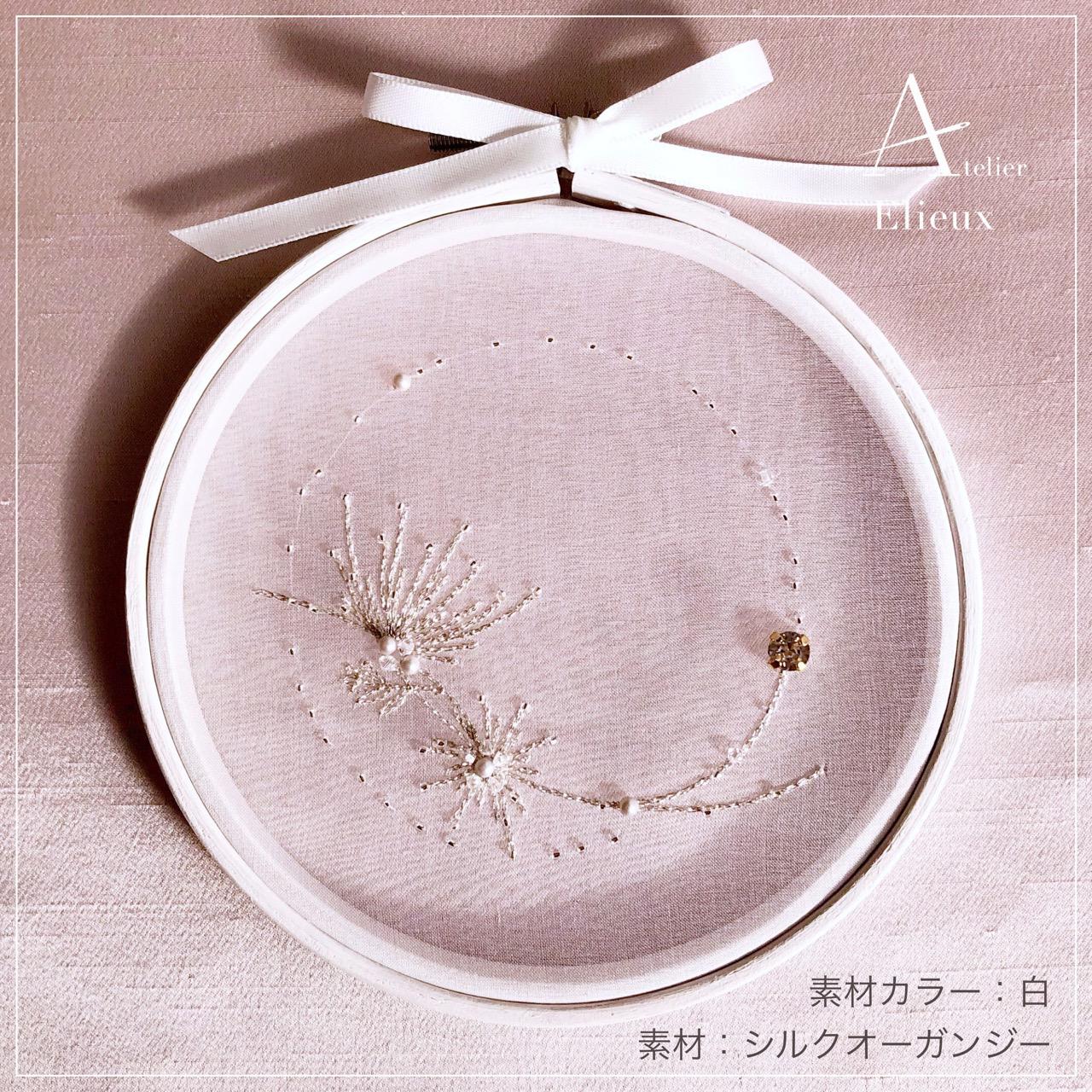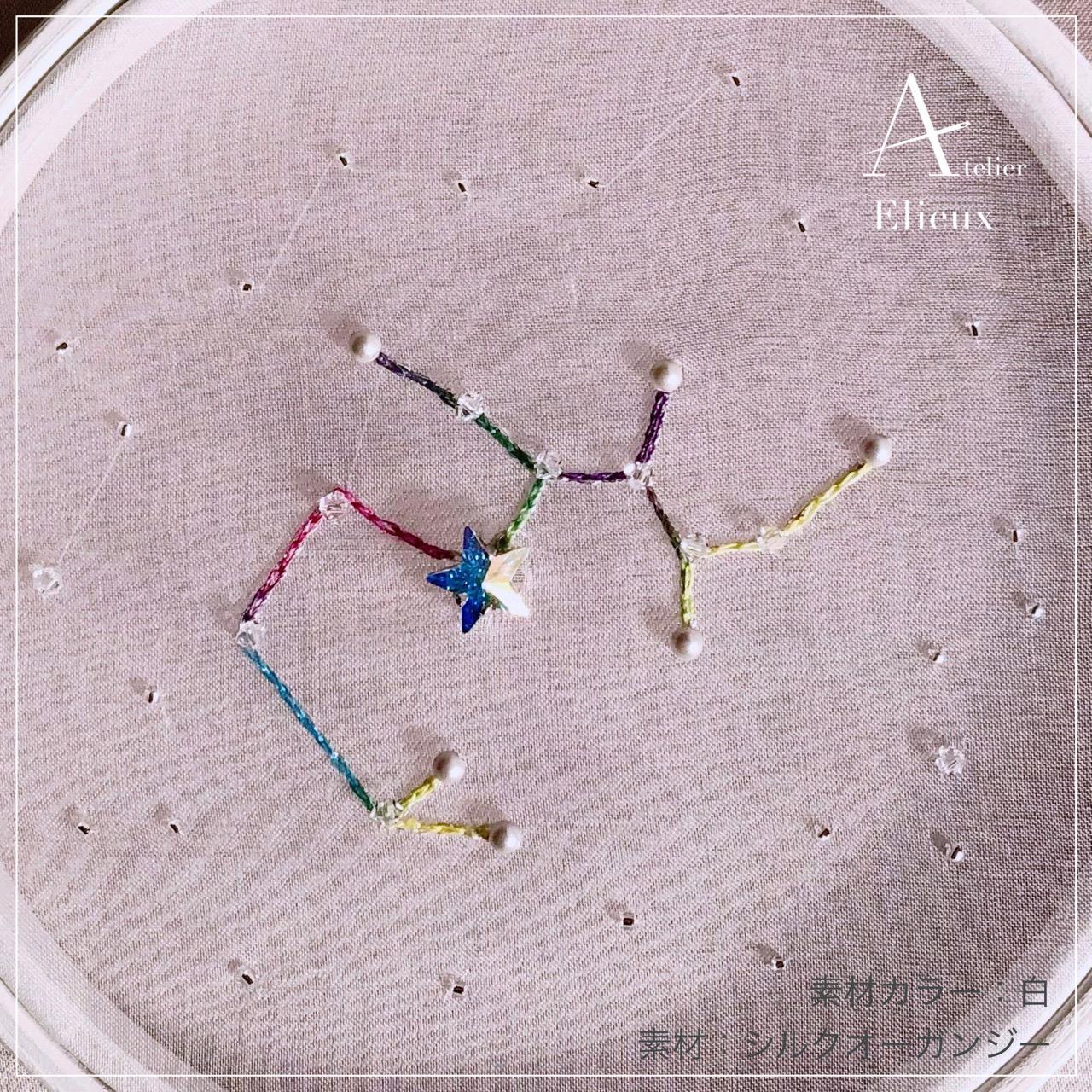 参考作品:シルクオーガンジーに星座(天秤座)の刺繍