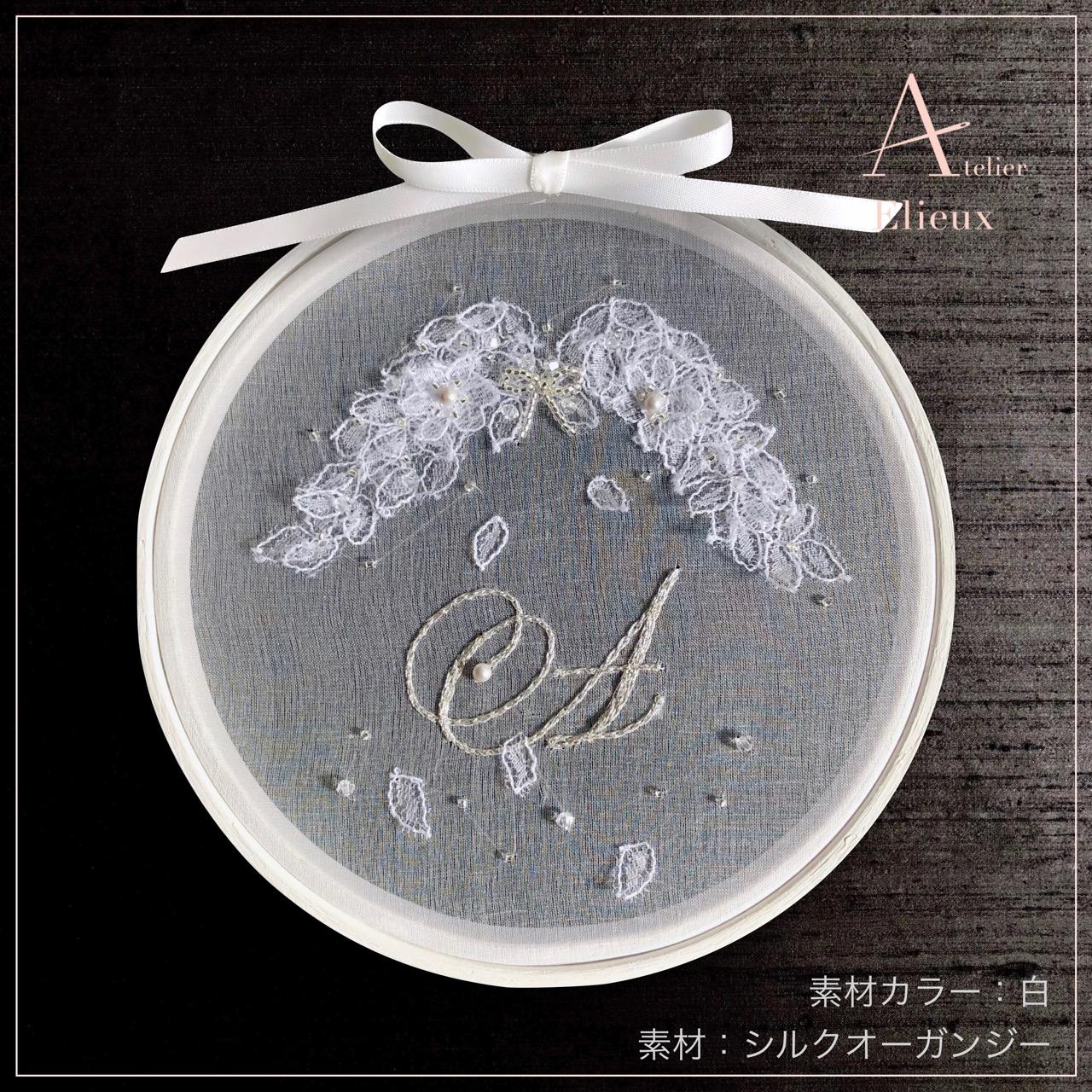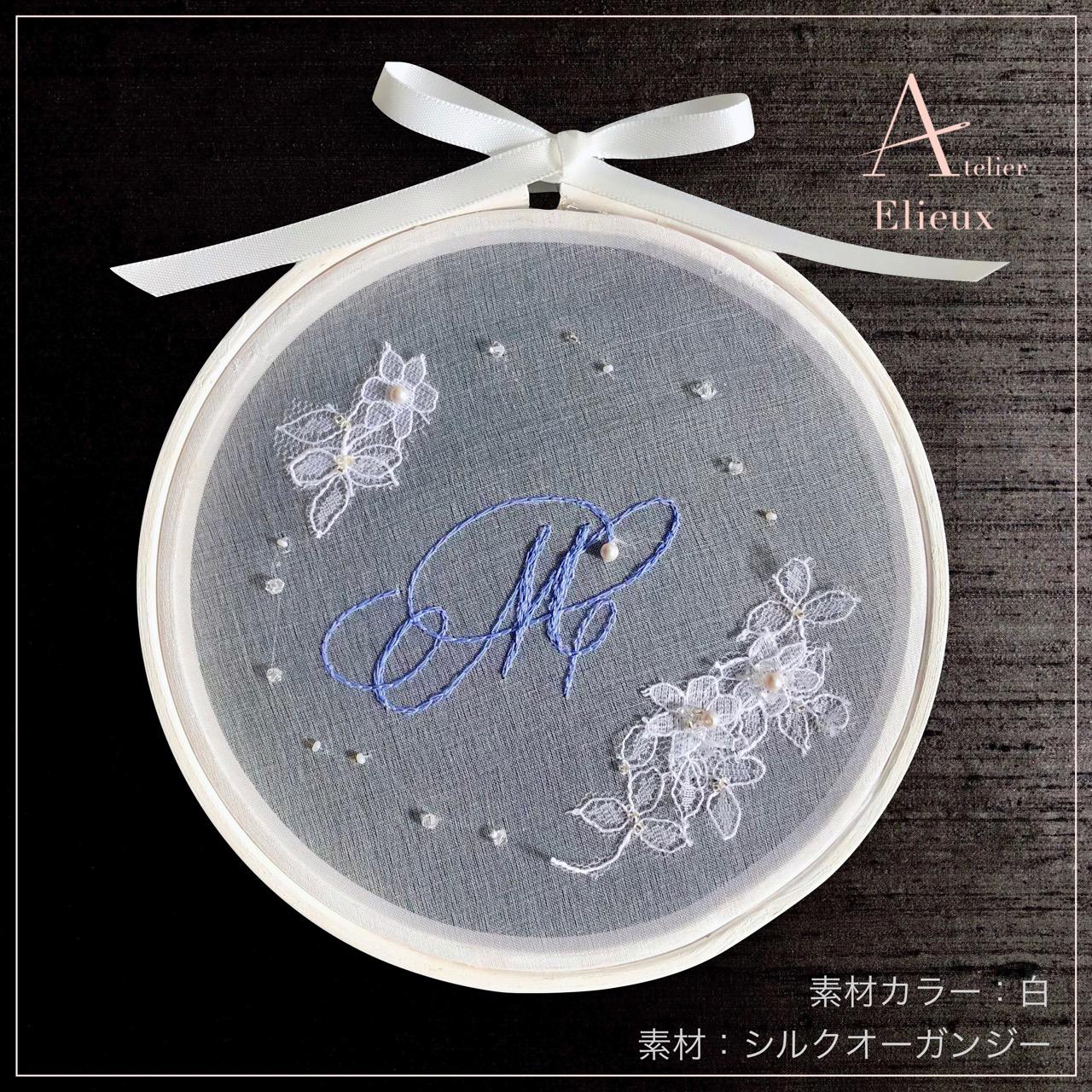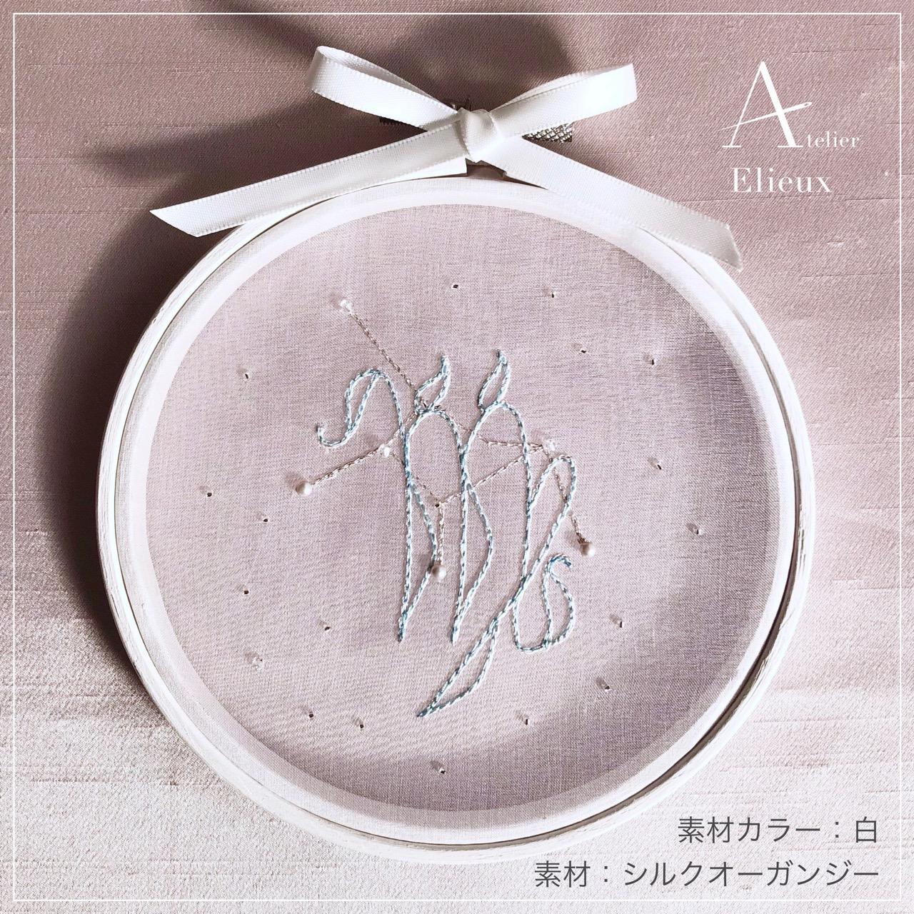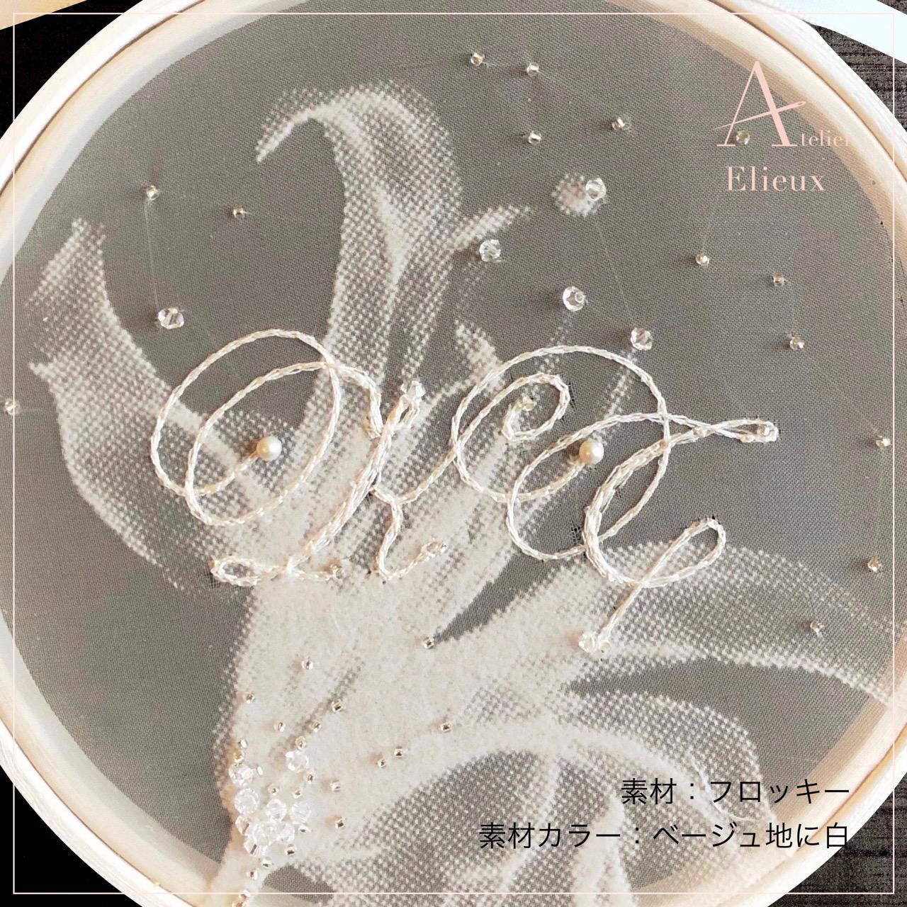 参考作品:白フロッキー素材ににWイニシャルの刺繍